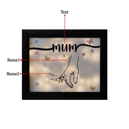 2 Names-Personalized Mum Family Hooking Hands Frame Custom Text LED Night Light Gift For Mum