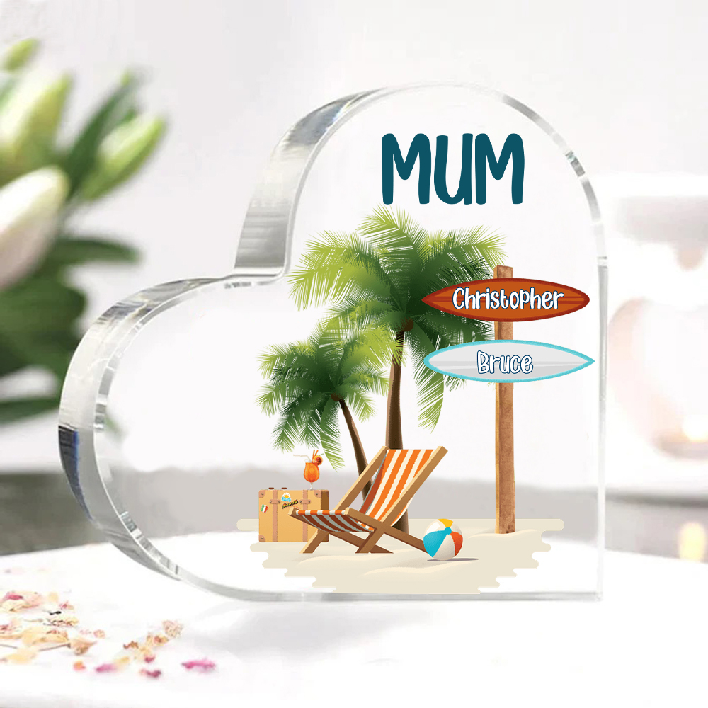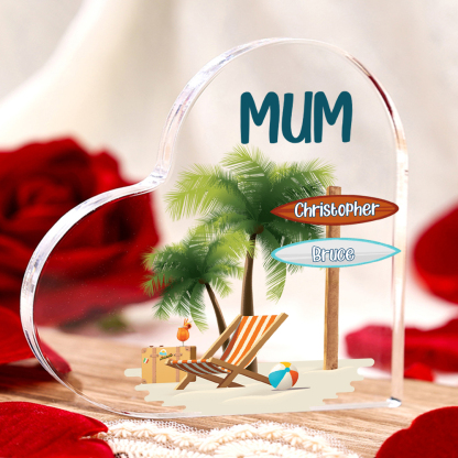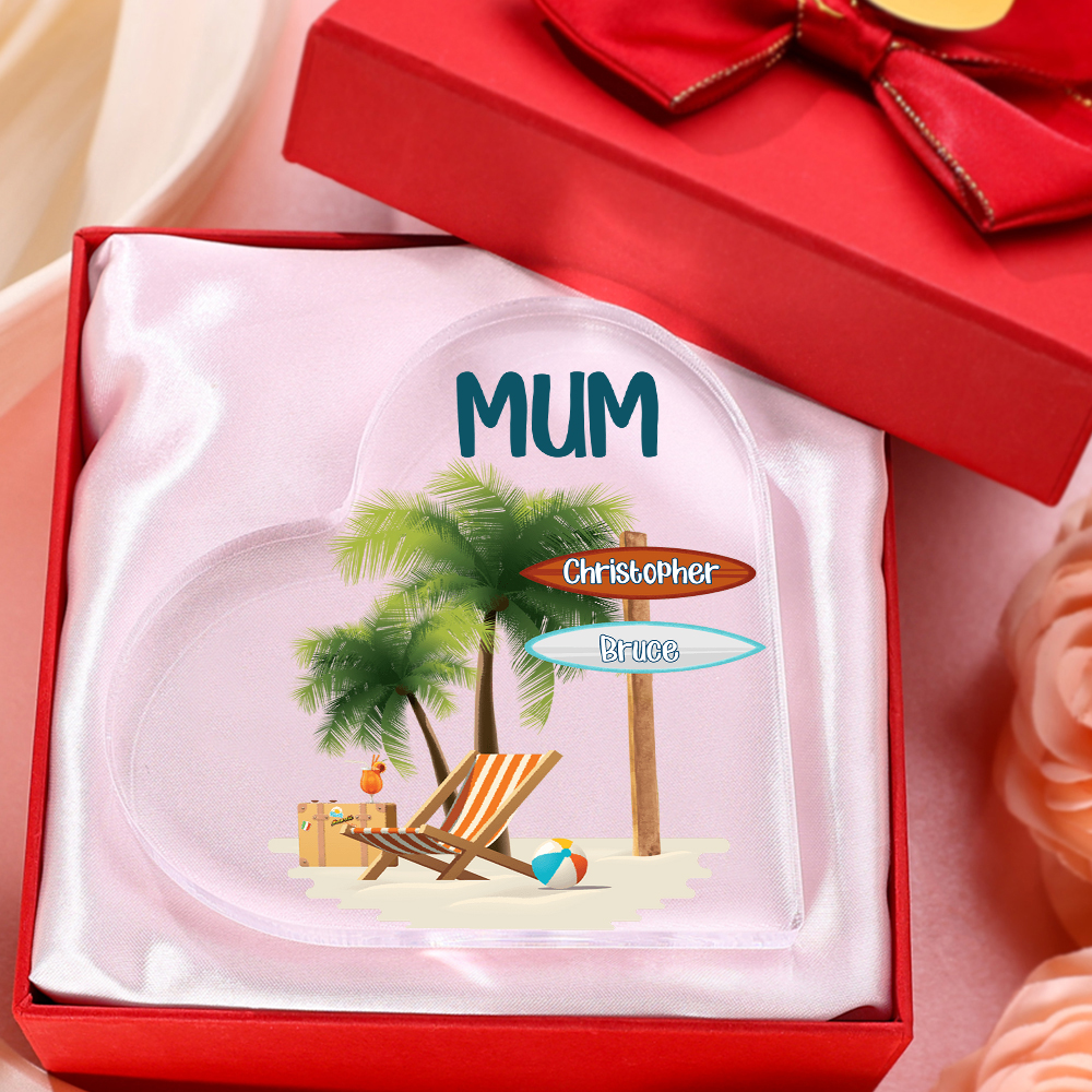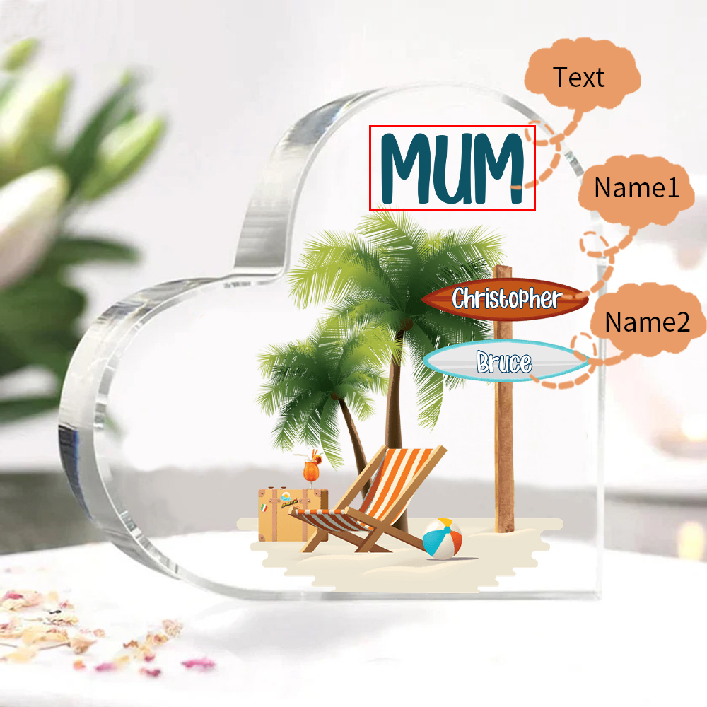 2 Names-Personalized Mum Vacation Acrylic Heart Keepsake Custom Text Acrylic Plaque Ornaments Gifts Set With Gift Box for Nan/Mother