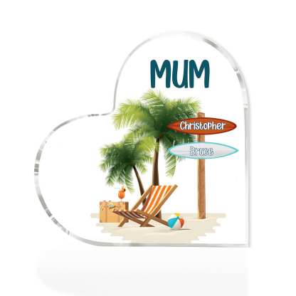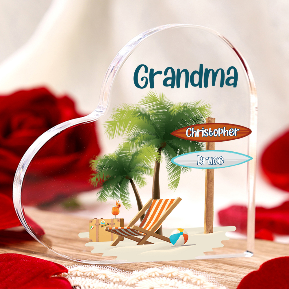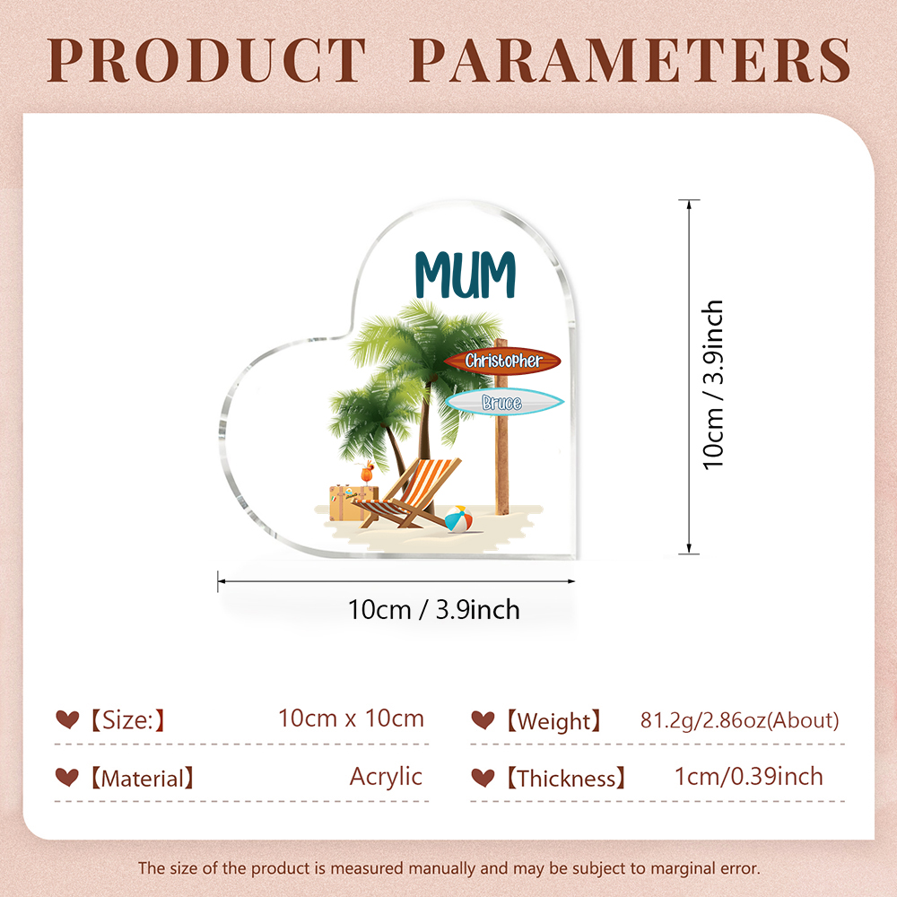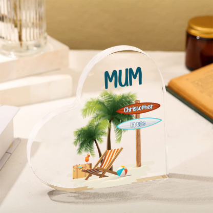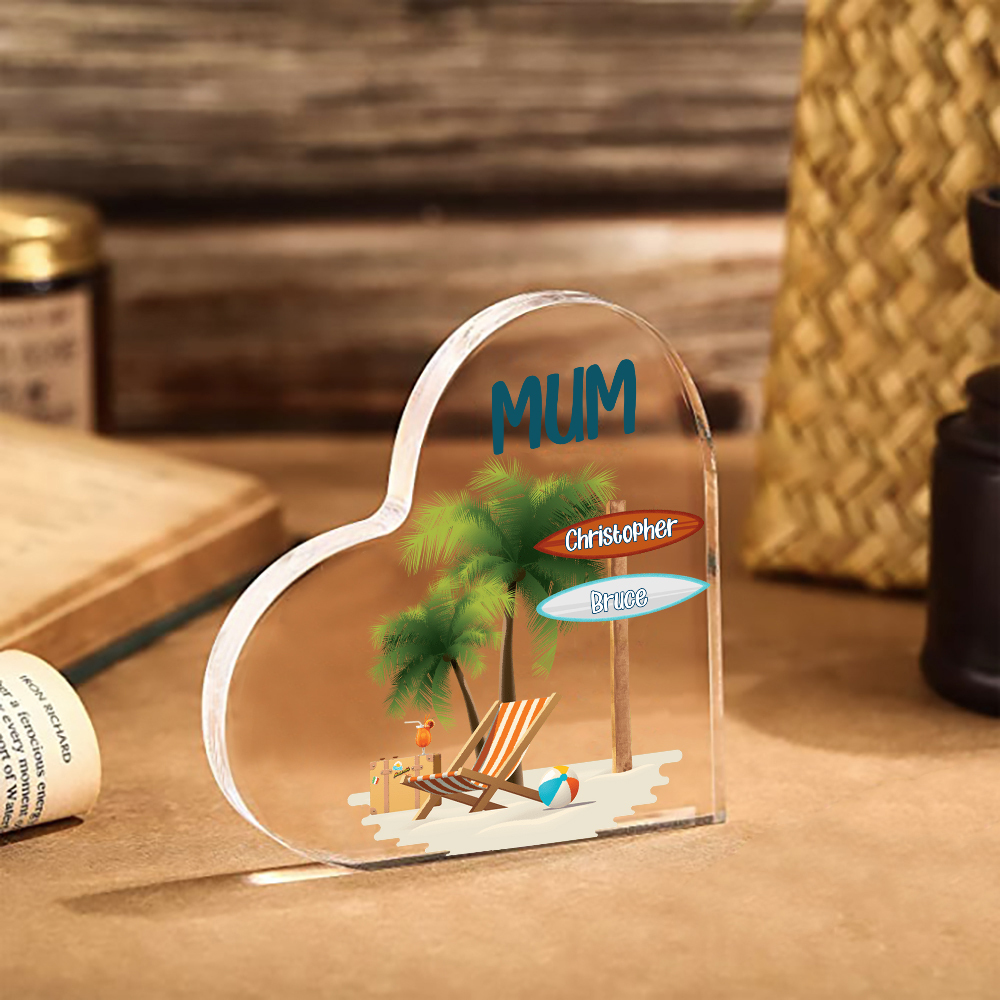2 Names-Personalized Mum Vacation Acrylic Heart Keepsake Custom Text Acrylic Plaque Ornaments Gifts Set With Gift Box for Nan/Mother