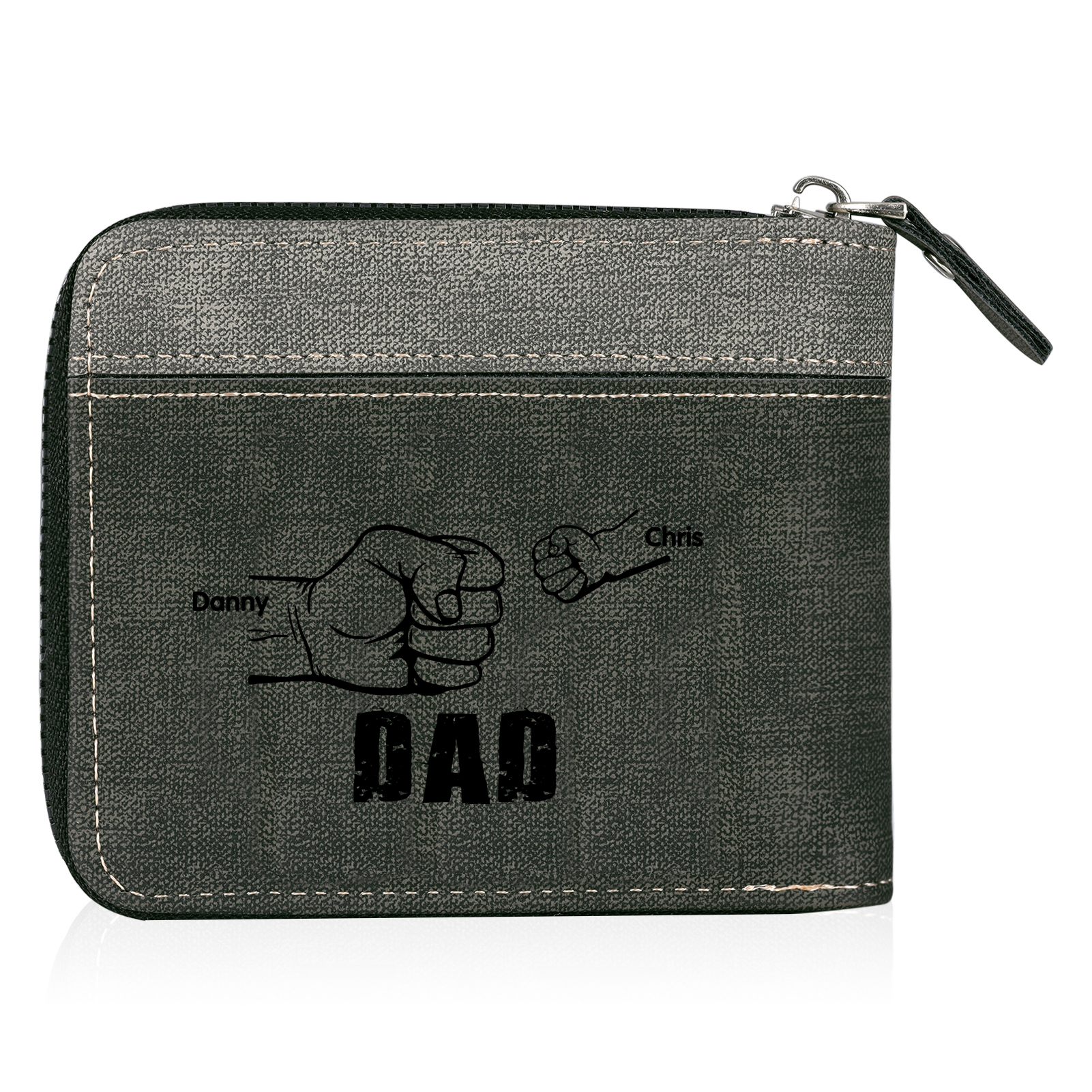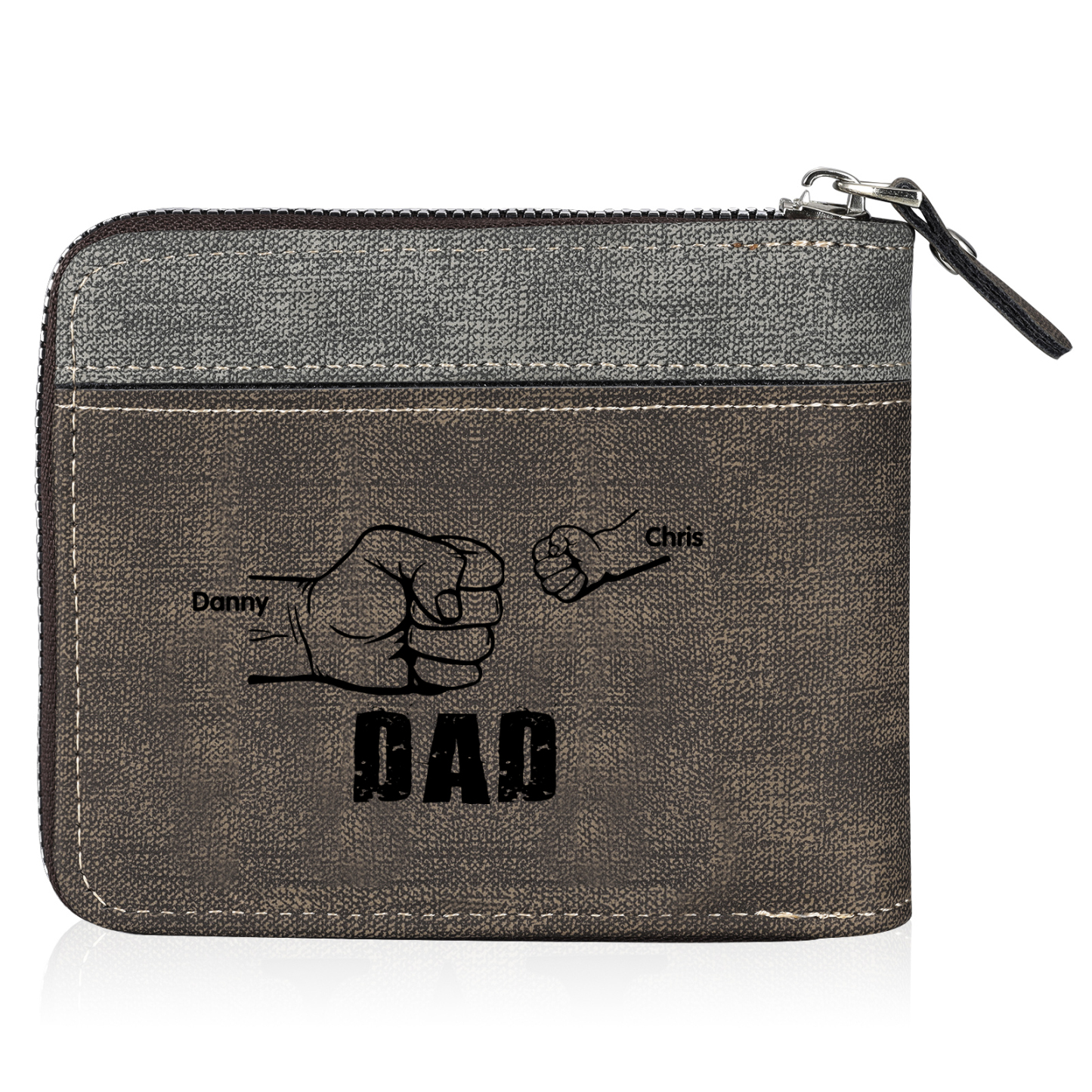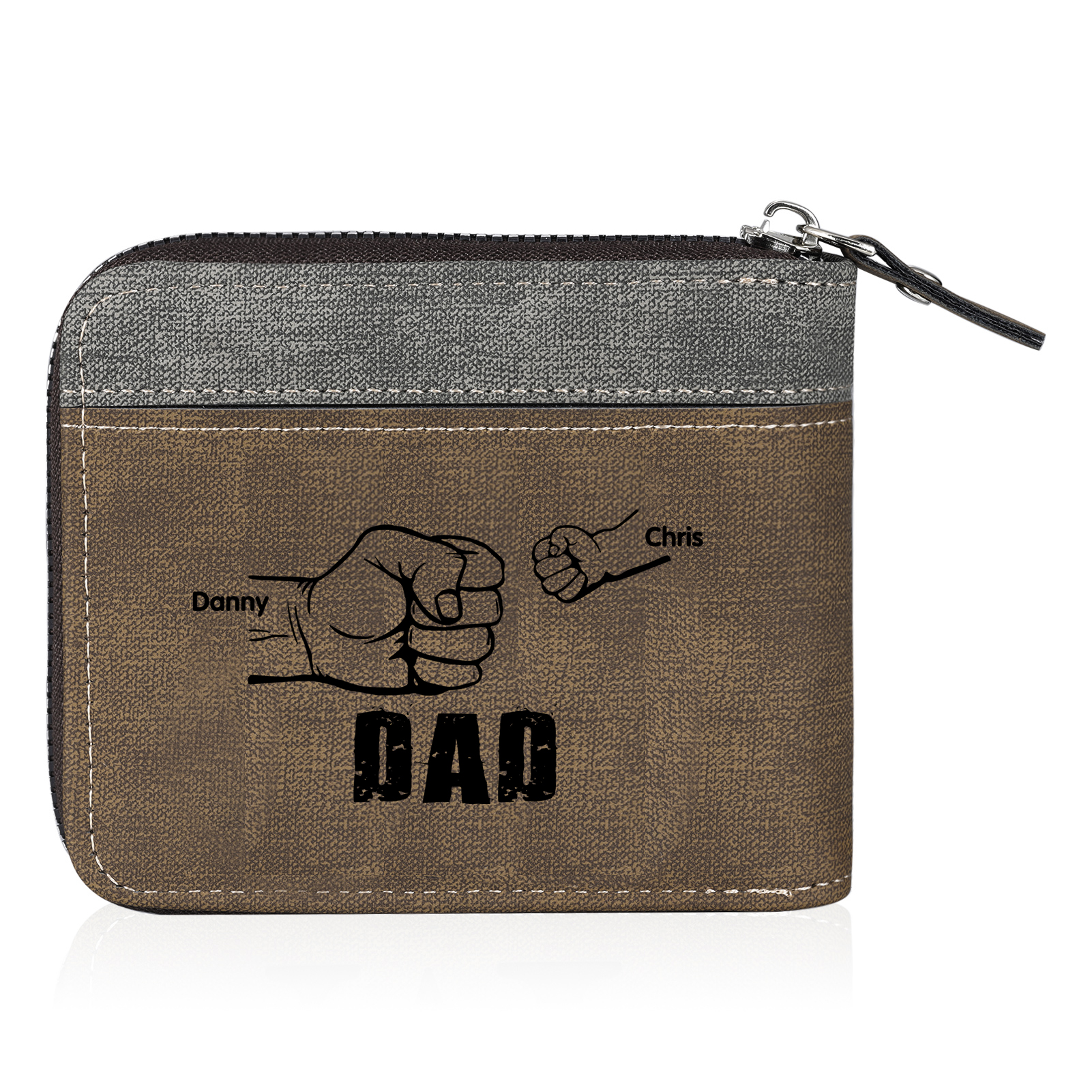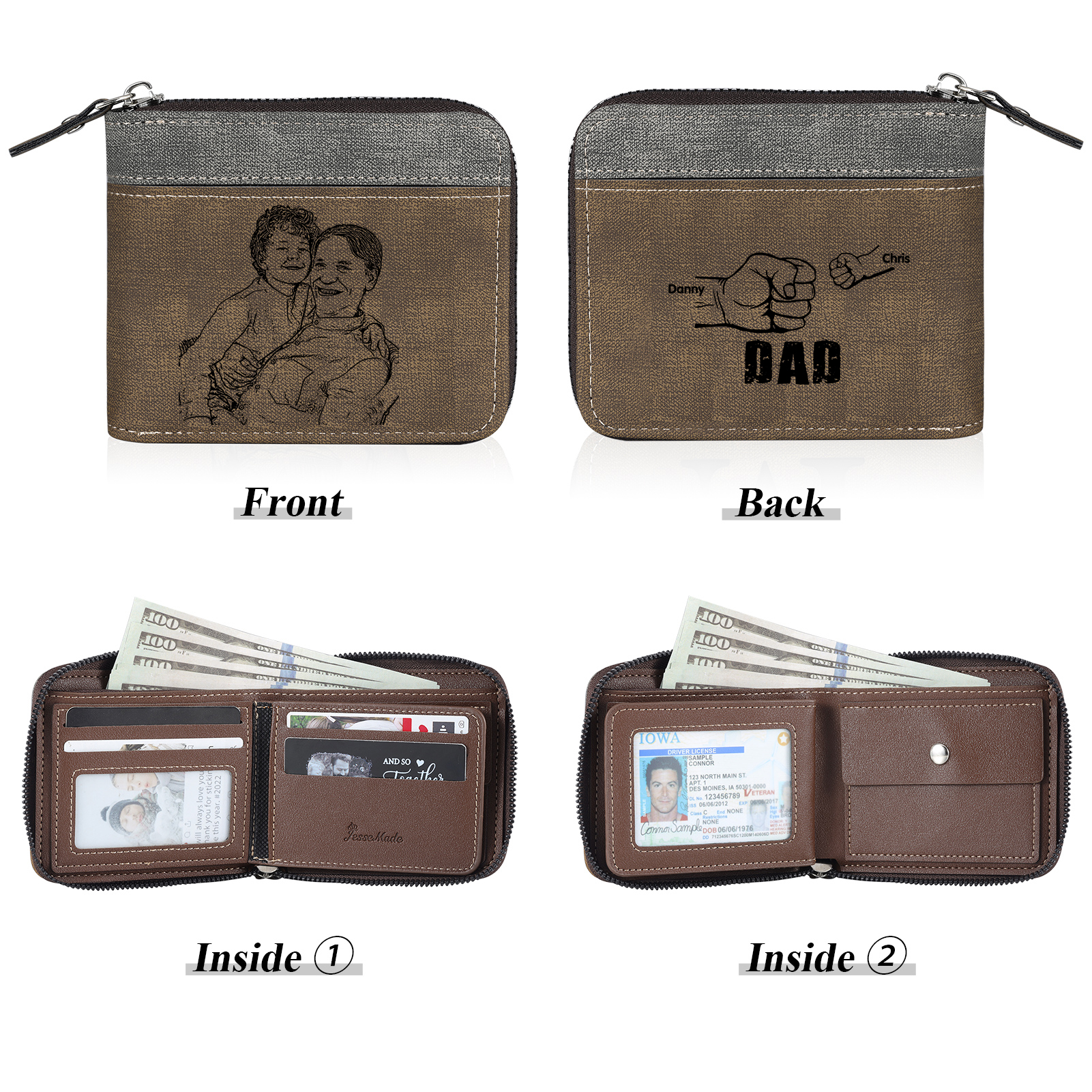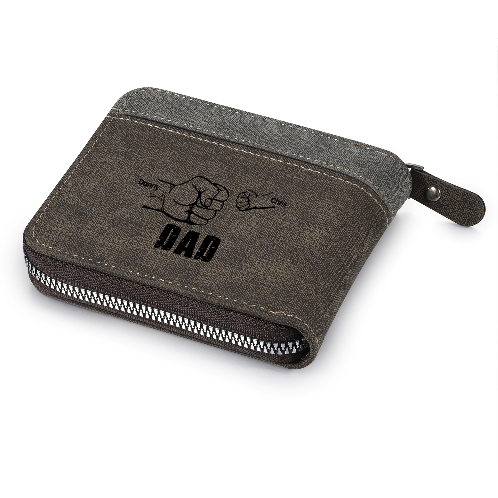 2 Names - Personalized Photo Custom Leather Men's Zipper Wallet as a Father's Day Gift for Dad