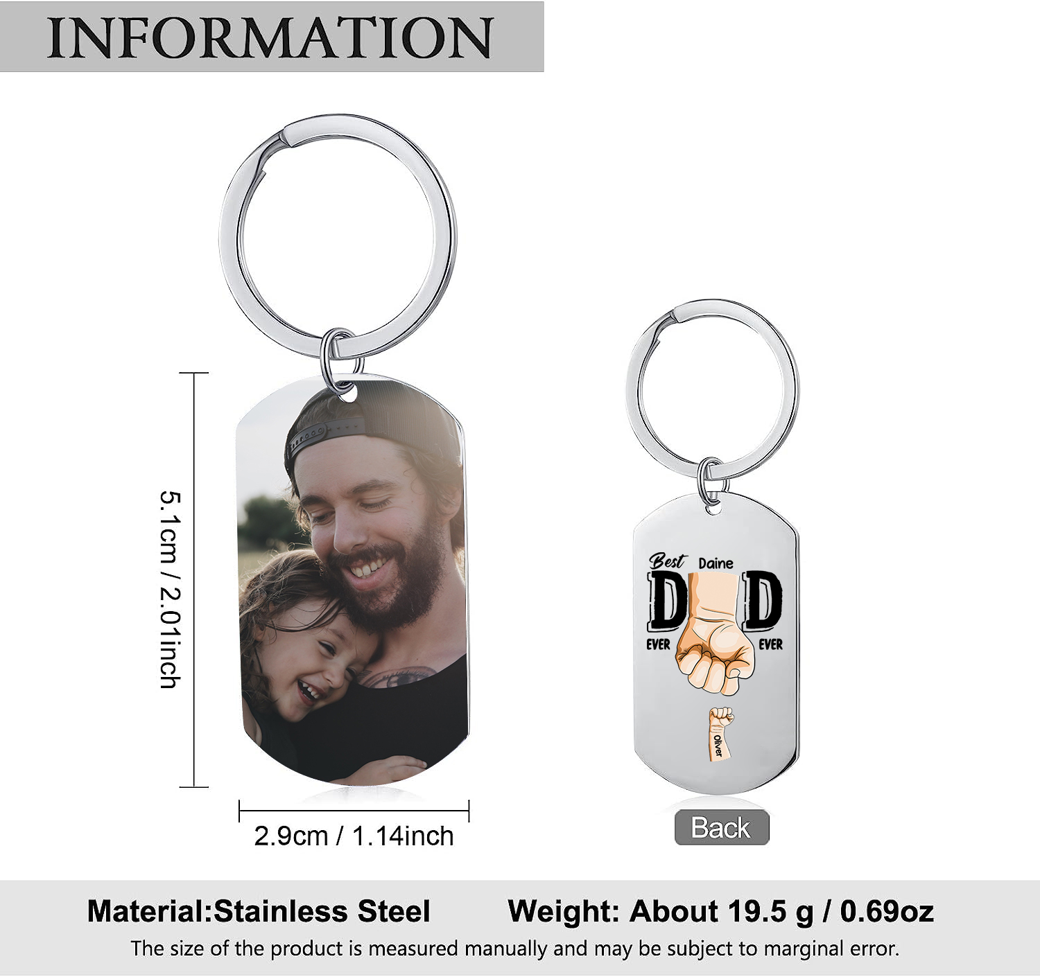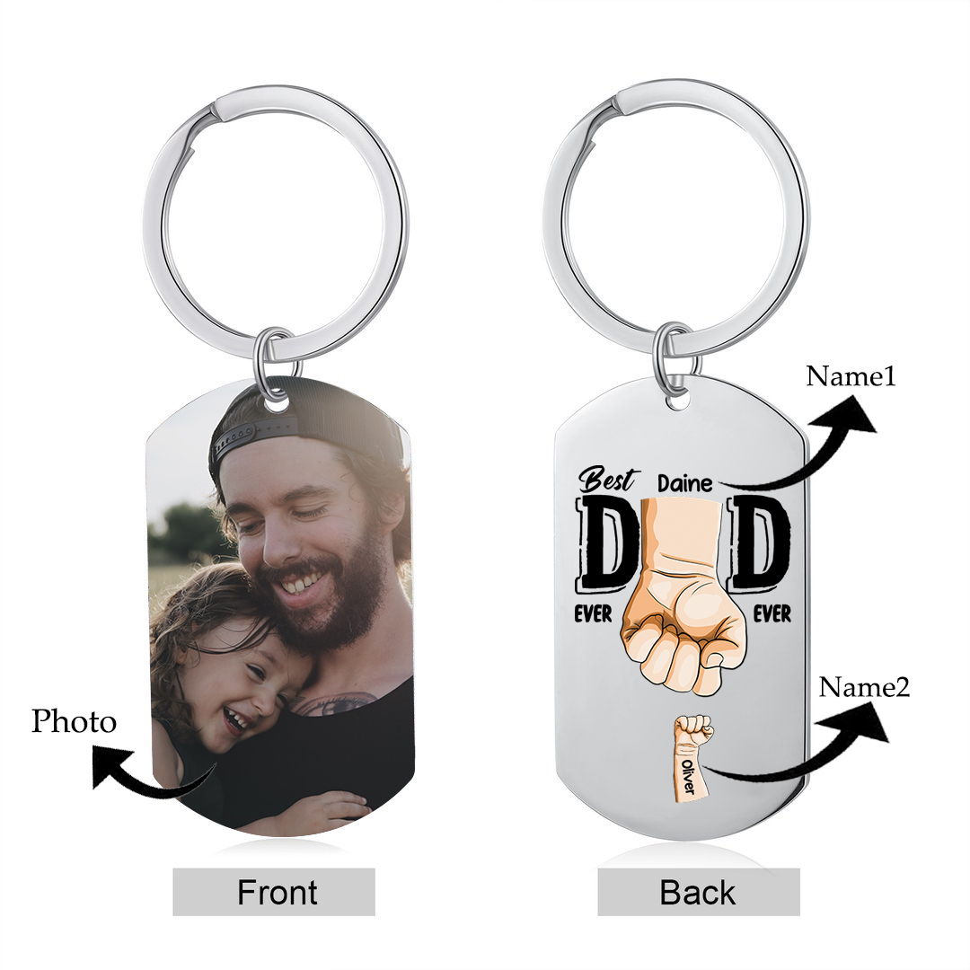 2 Names-Personalized Photo Keychain Gift Customized Name Special Keychain Gift for Dad