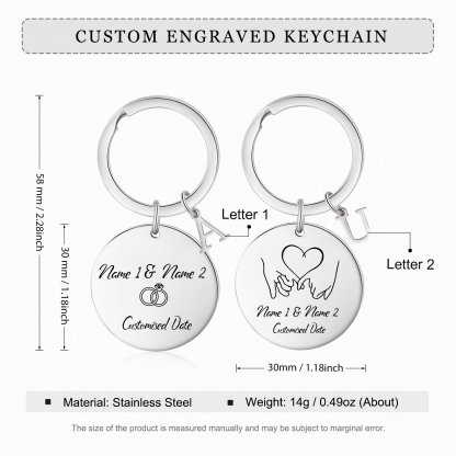 2-Names Personalized Photo Two Pack Pair Couple Keychain Engrave Letters And Text Matching Couple Gifts, Special Gift For Him/Her