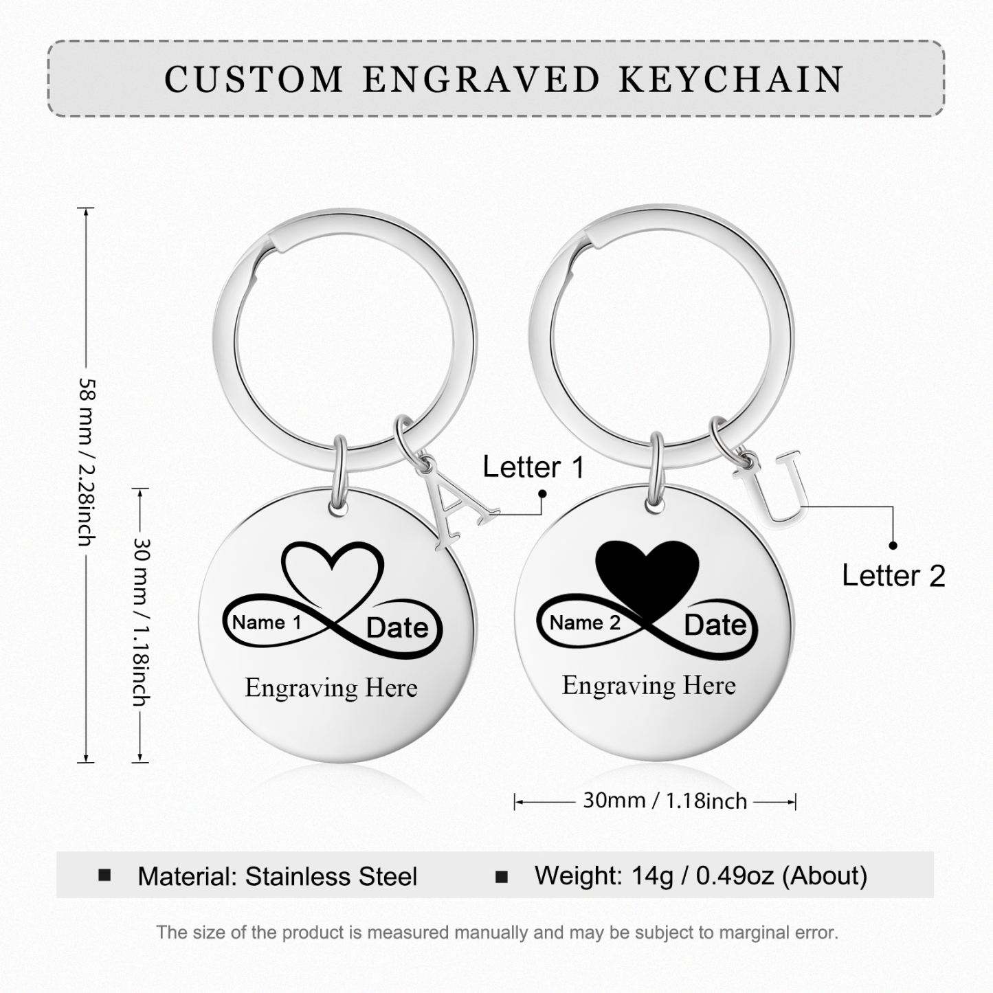 2-Names Personalized Photo Two Pack Pair Couple Keychain Engrave Letters And Text Matching Couple Gifts, Special Gift For Him/Her