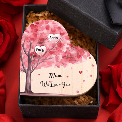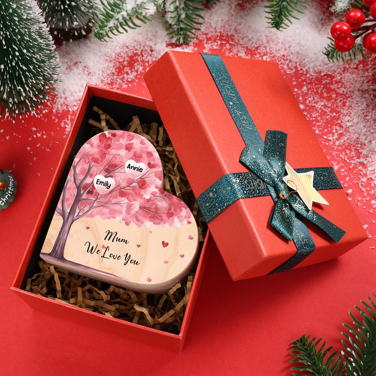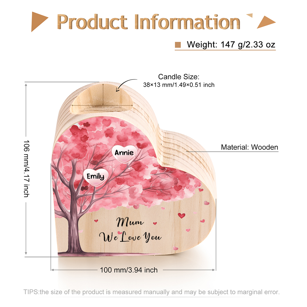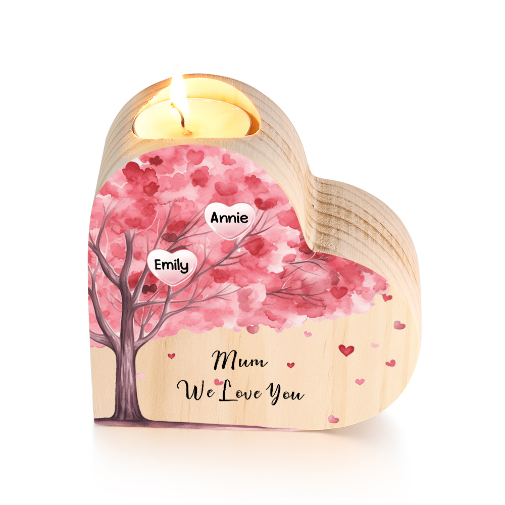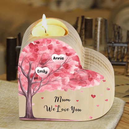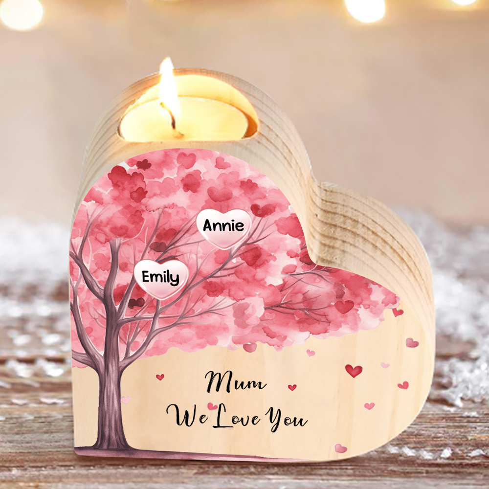 2 Names-Personalized Pink Heart Tree Heart-Shape Candlestick Set With Gift Box Custom Text Mother's Day Gift Wooden Custom Candle Holder For Family