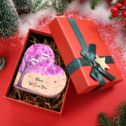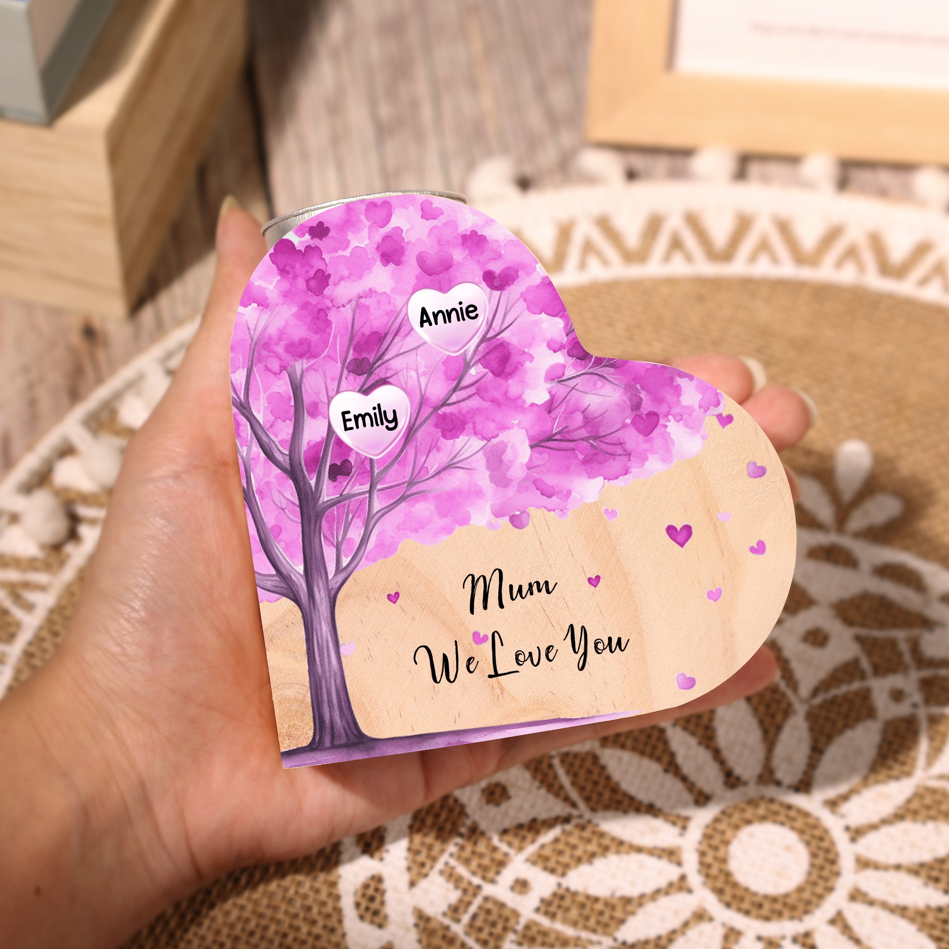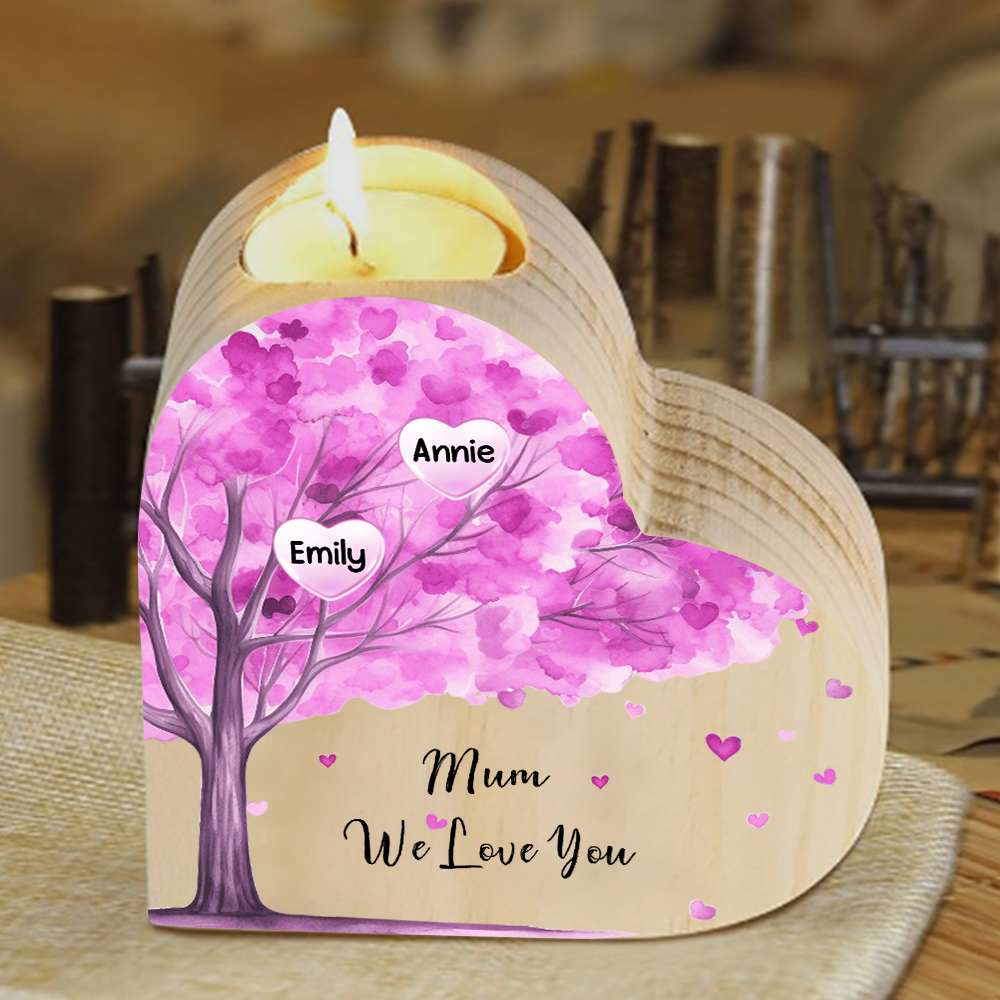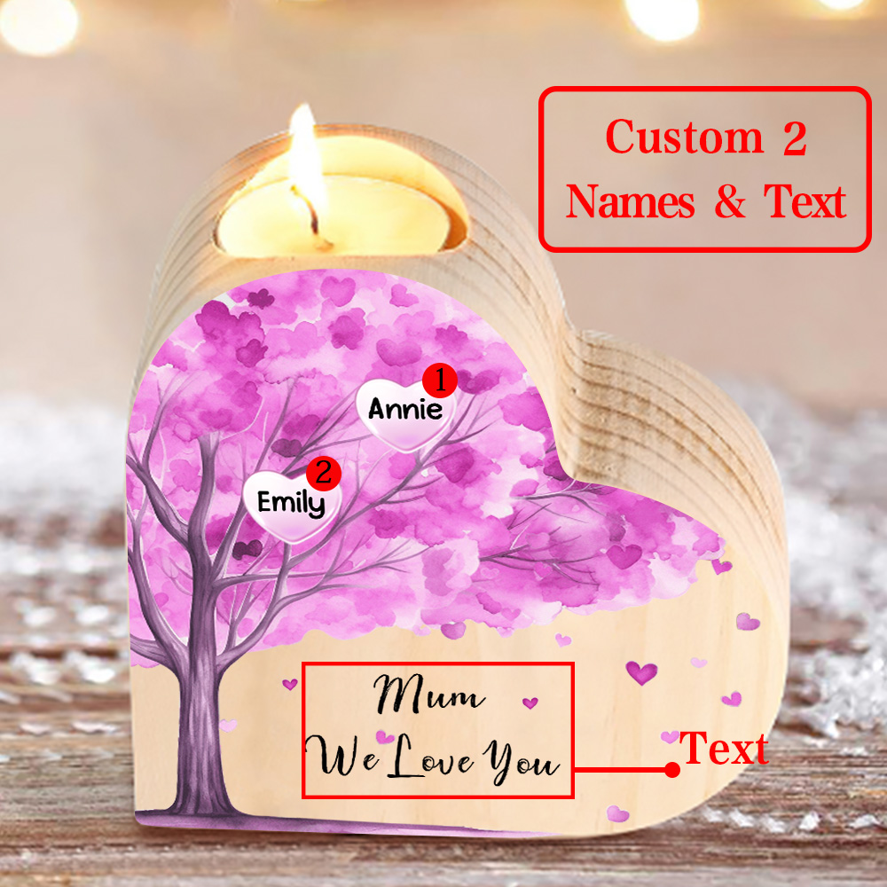 2 Names-Personalized Purple Heart Tree Heart-Shape Candlestick Set With Gift Box Custom Text Mother's Day Gift Wooden Custom Candle Holder For Family