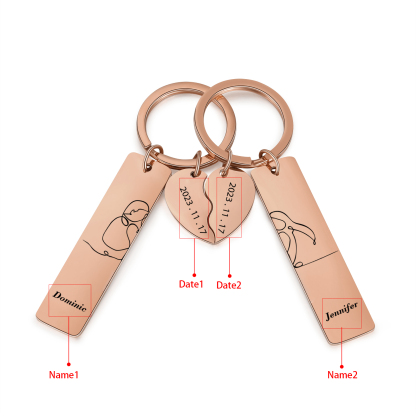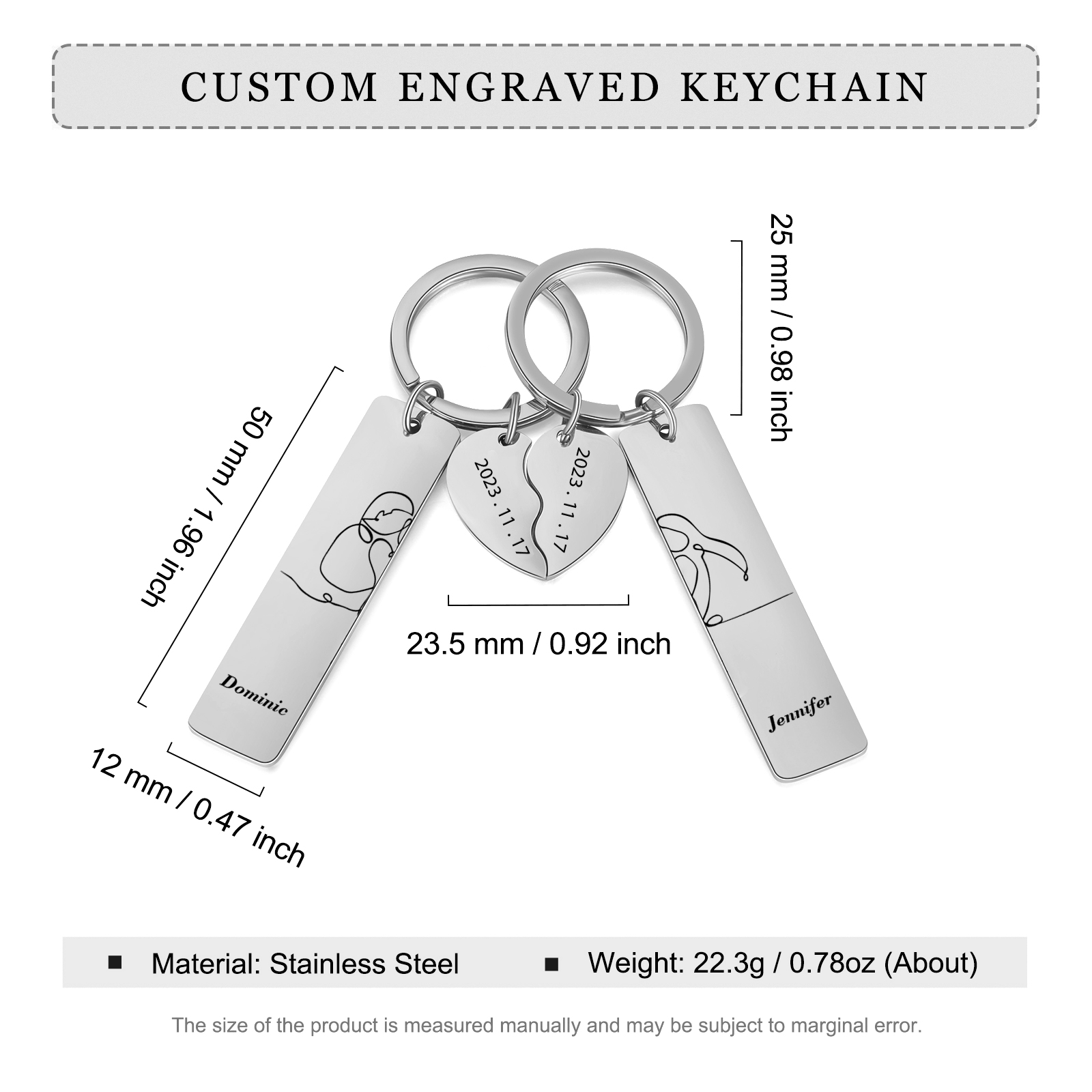 2-Names Personalized Puzzle Couple Keychain Engrave Letters And Date Matching Couple Gifts, Special Gift For Him/Her