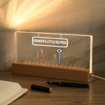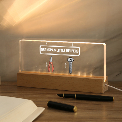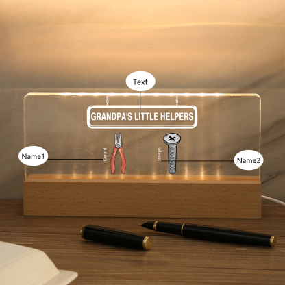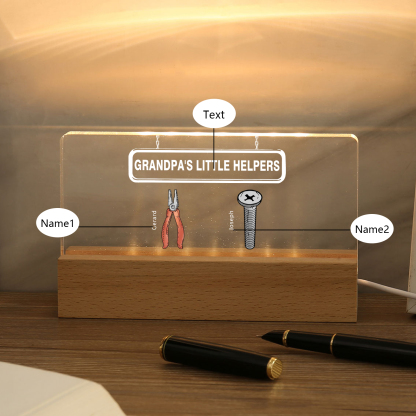 2 Names - Personalized Repair Tool Pattern Table Lamp Customized Text Father's Day Gift for Grandpa/Dad