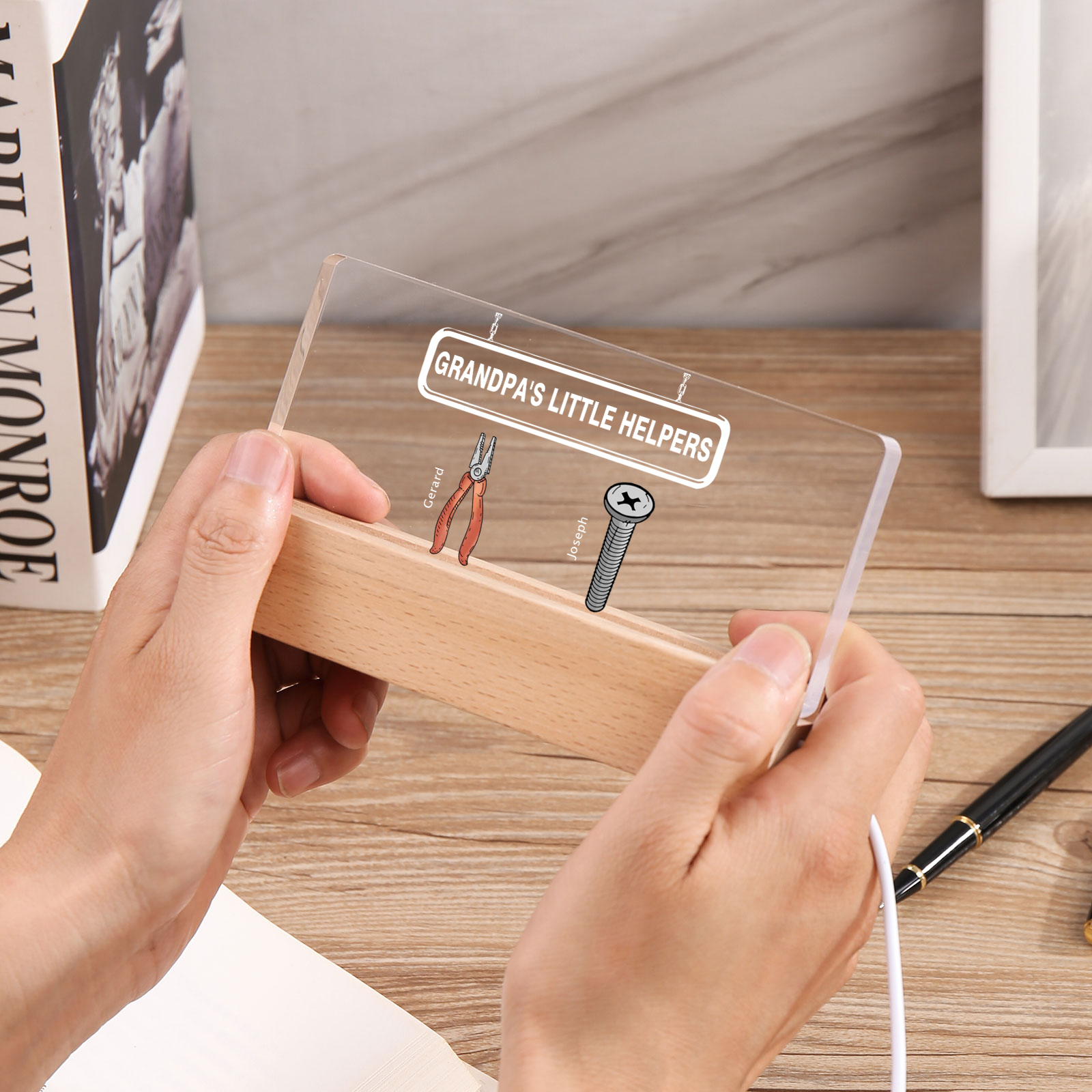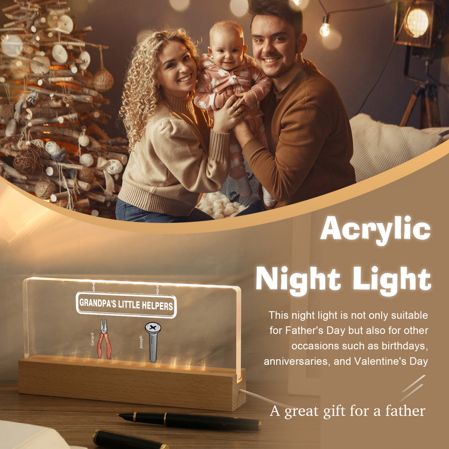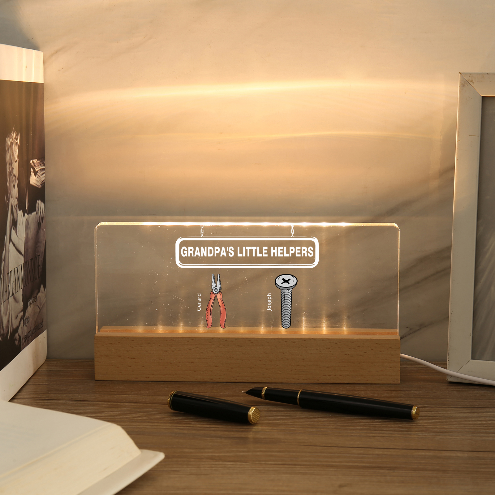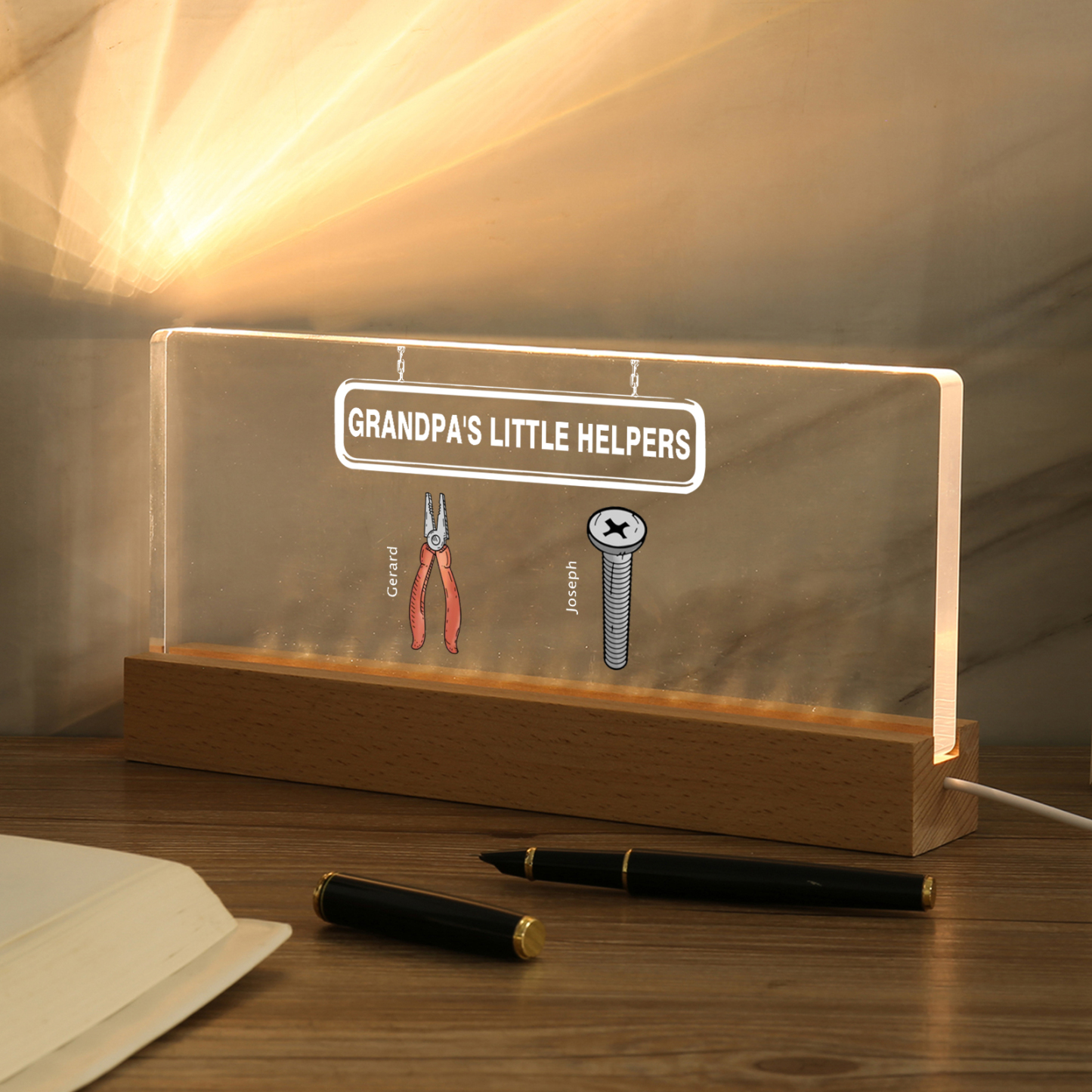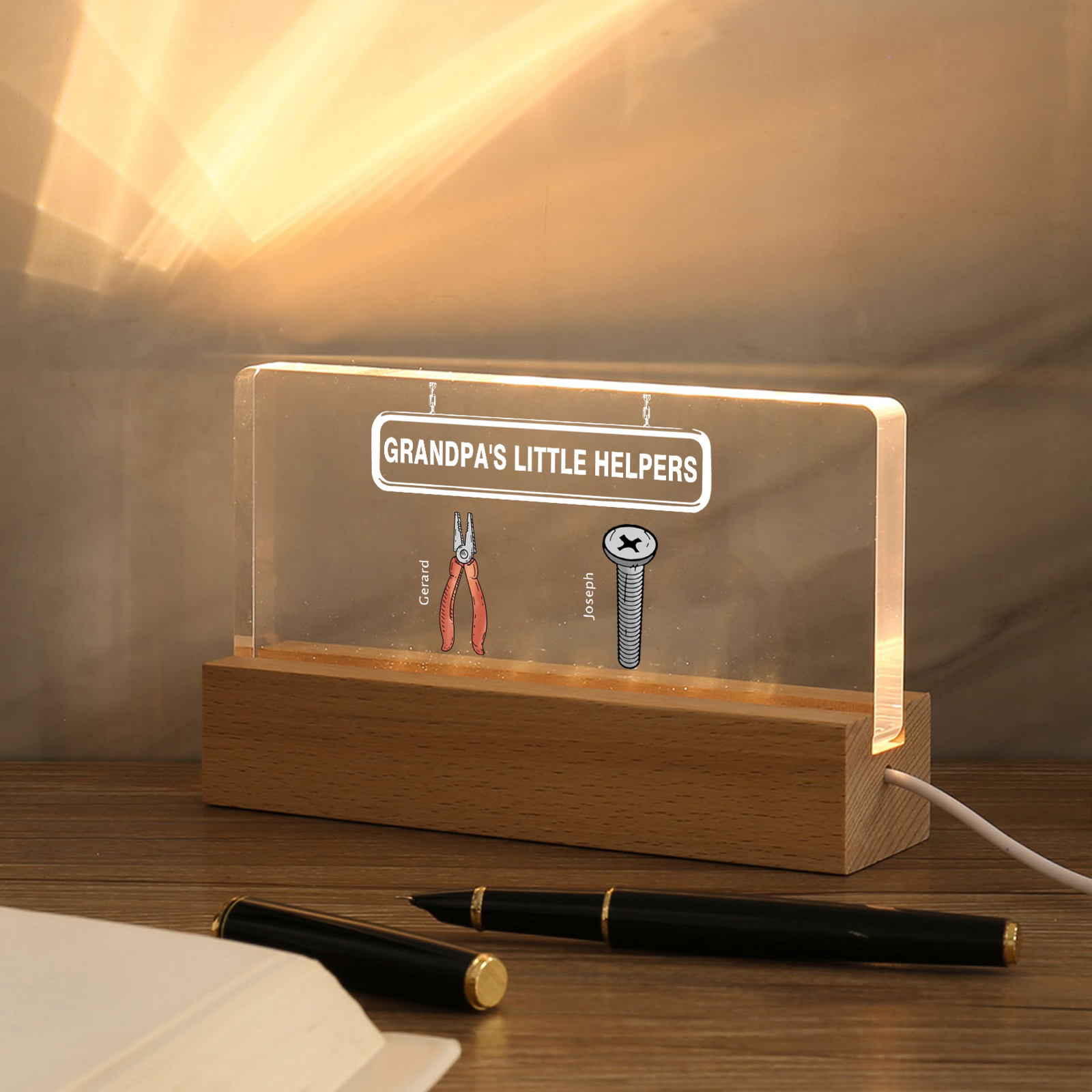 💡Customize a Repair Tool Table Lamp with Your Name! 🌟 Light up your family's world with a unique gift. ❤️This stylish little helper table lamp with name and custom text will add a modern touch to his space. Brighten up his day with personalized warmth and style. Order now to brighten his day! 🥰