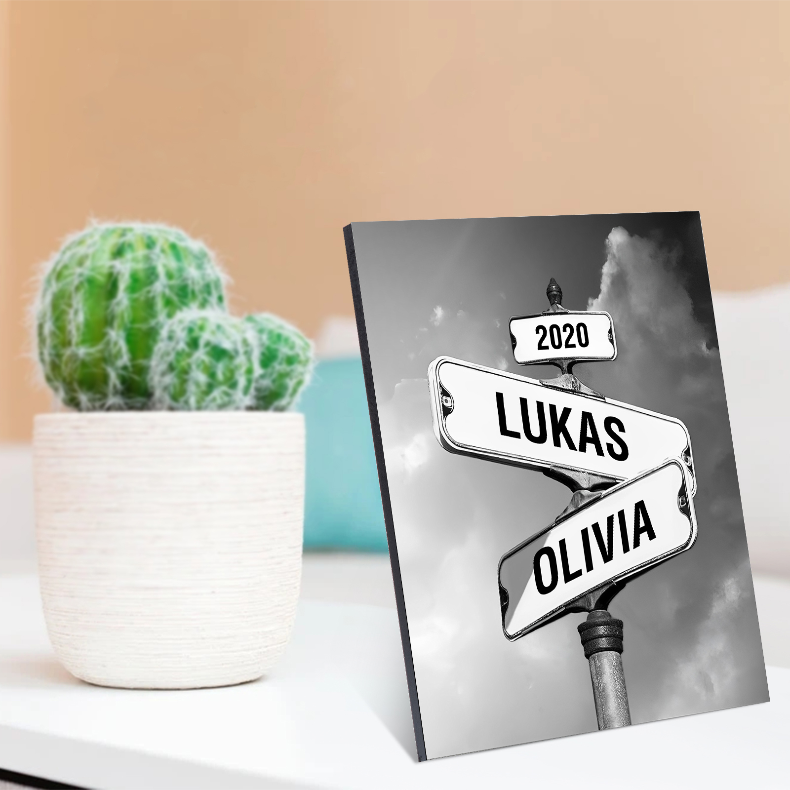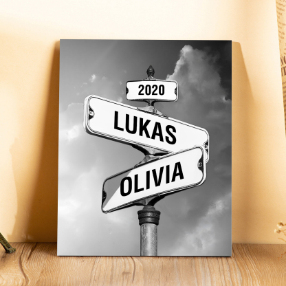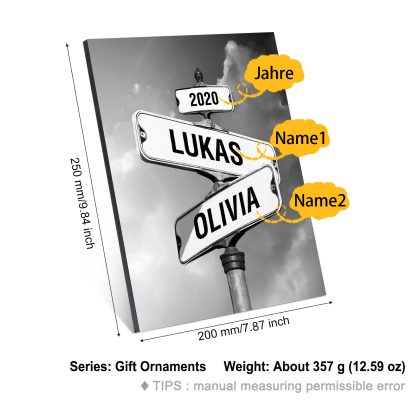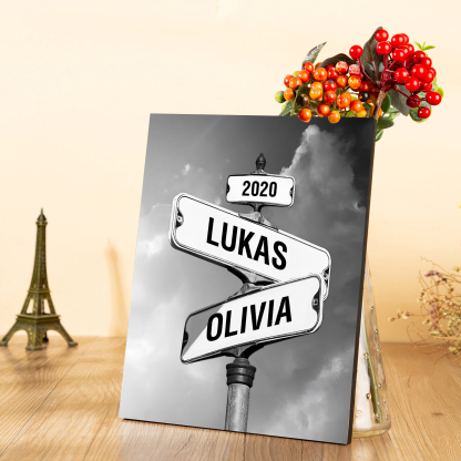 2 Names-Personalized Street Sign Wooden Ornament Gift-Customized Gift Ornament Desktop Decoration Picture Frame For Couple