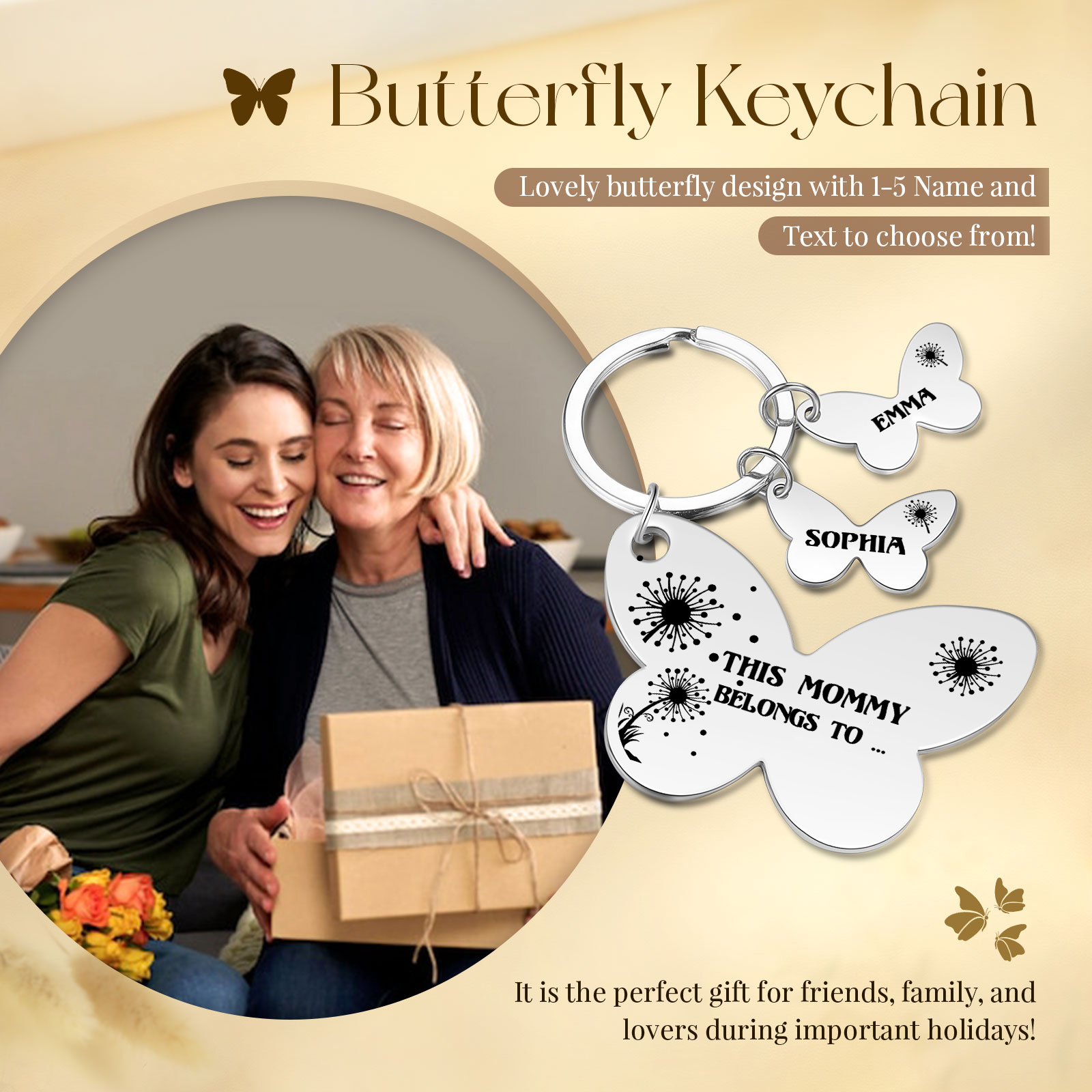 Surprise your loved one with a personalized butterfly-shaped keychain this back-to-school season! 🌟 Customize it with their name for a thoughtful touch. 🎁 This stylish accessory is not only practical but also a symbol of growth and transformation. 🦋💫 Get ready to spread your wings and fly into the new school year! 📚🎉