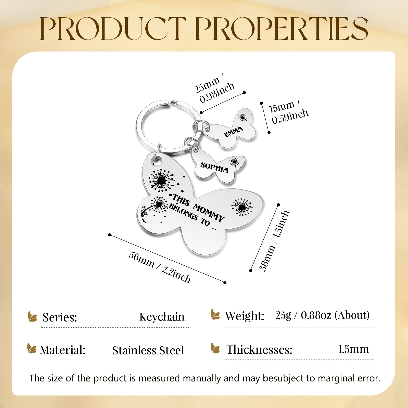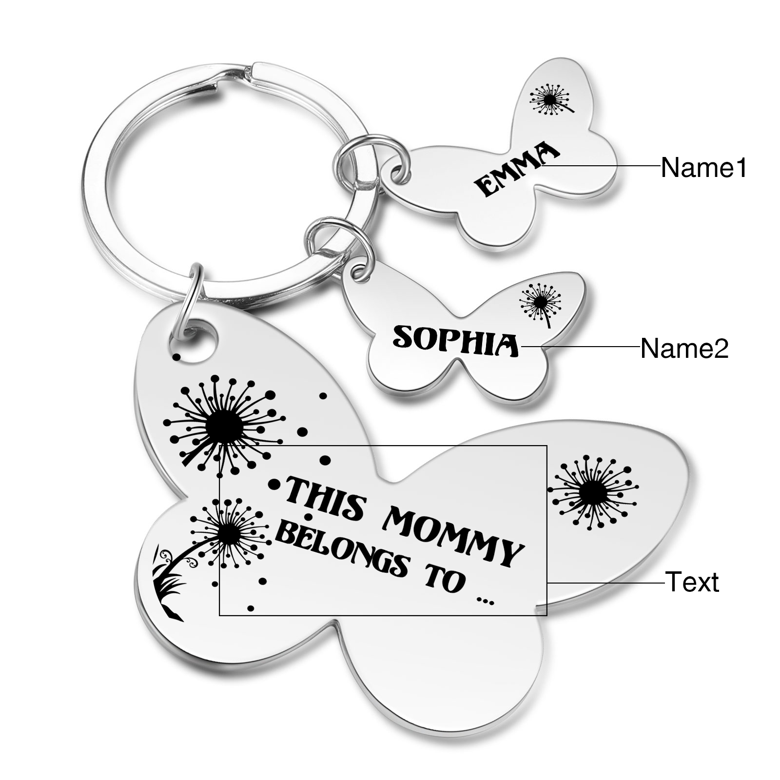 2 Names - Personalized Text Stainless Steel Butterfly Shape Keychain For Her
