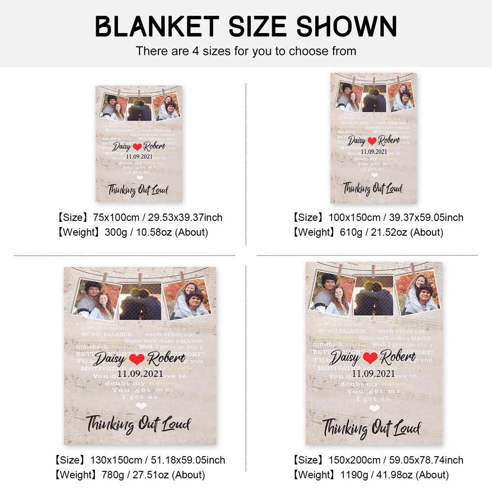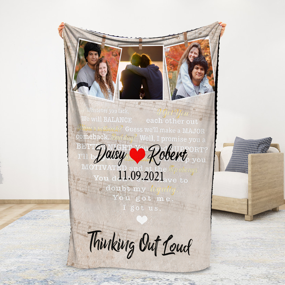 2 Names-Personalized Thinking Out Loud Couple Blanket Custom Photo And Date Sweet Gift For Valentine's Day