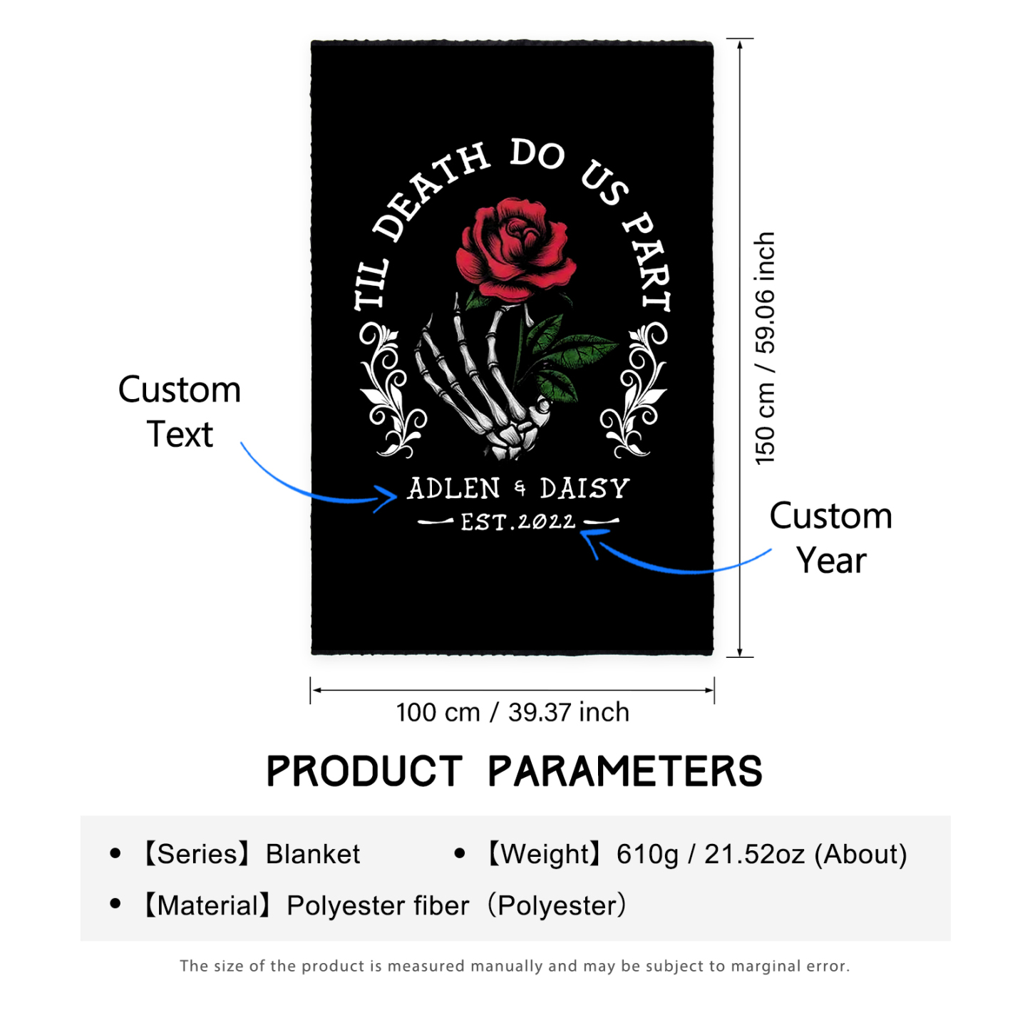 2 Names-Personalized Til Death Do Us Part Couple Blanket Custom Year Sweet Gift For Valentine's Day