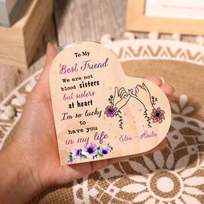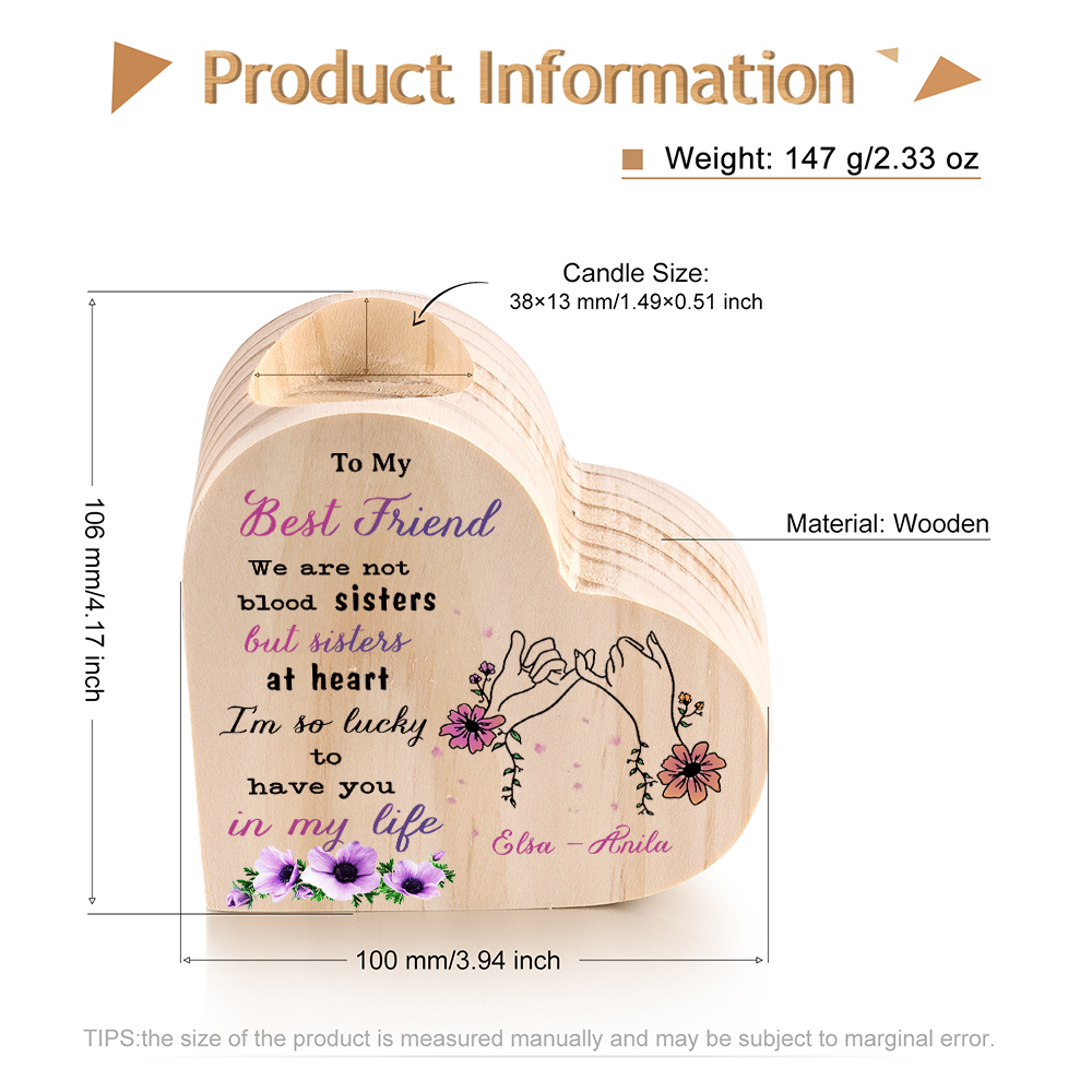 2 Names-Personalized To My Best Friend Flower Heart-Shape Candlesticks-I'm So Lucky To Have You In My Life- Wooden Custom Candle Holder For Friends