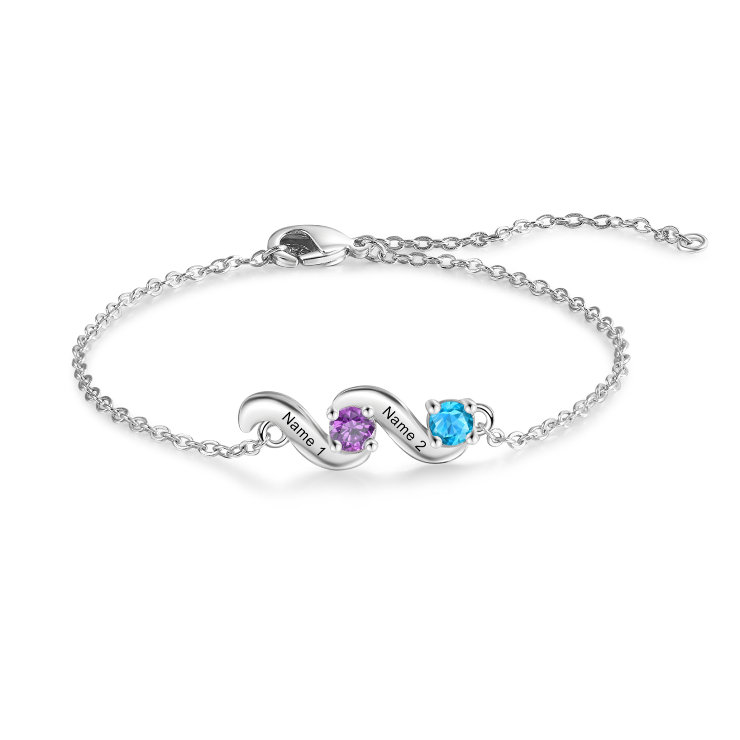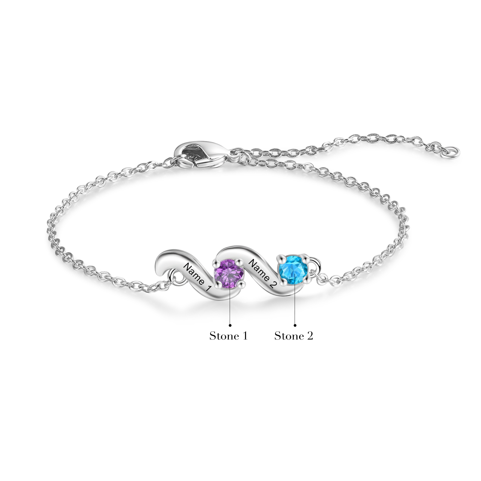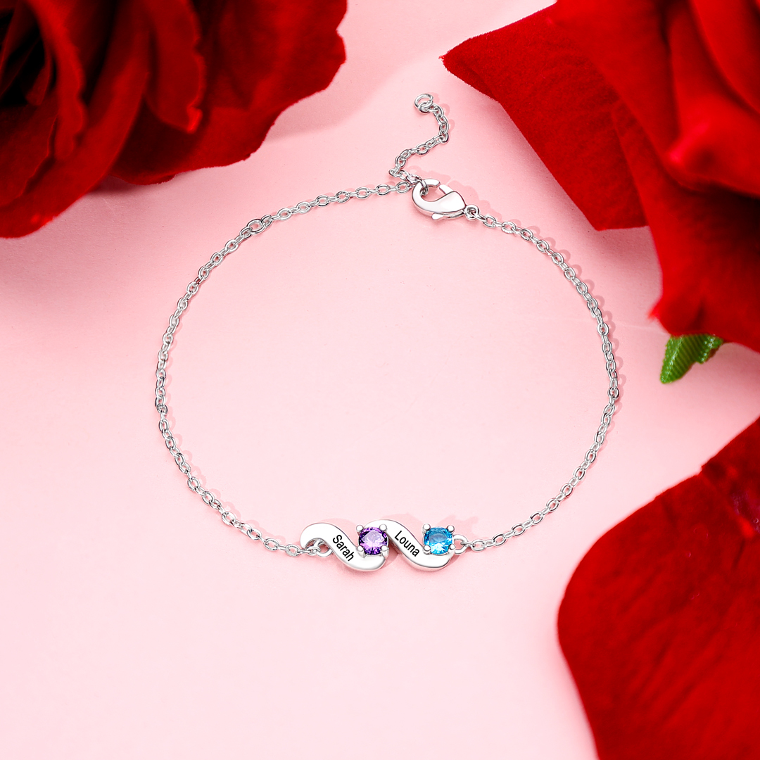 This exquisite bracelet allows you to customize it with up to 5 names and birthstones, making it a unique and meaningful piece just for you or your loved ones. The adjustable length ensures a perfect fit, catering to various wrist sizes. Crafted with meticulous attention to detail, this bracelet showcases the beauty of fine craftsmanship and personalization.