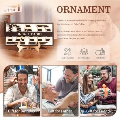 🔥Our customized wooden decor pieces are the perfect choice! Add a personal touch with your and his name engraved on high-quality wood. Show Dad your love with a unique keepsake that he'll cherish forever. Order now and make this Father's Day unforgettable!🎁