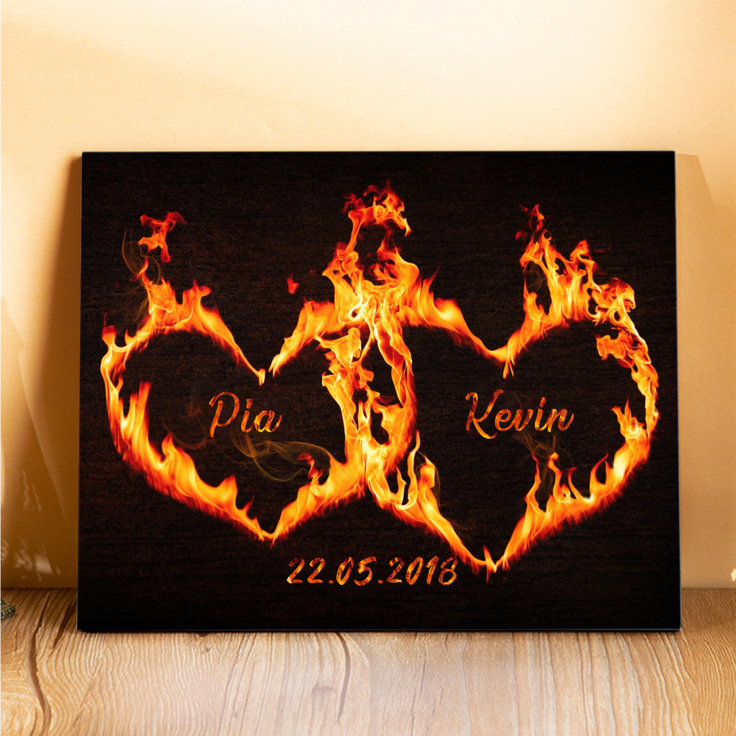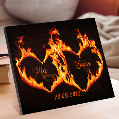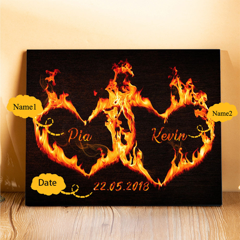 2 Names-Personalized Wooden Frame Custom Names and 1 Date Heart for Couple