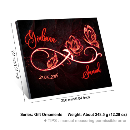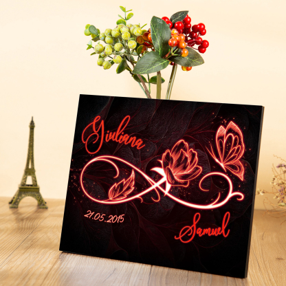 2 Names-Personalized Wooden Frame Custom Names and Date Flower and Butterfly for Couple