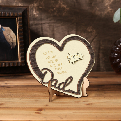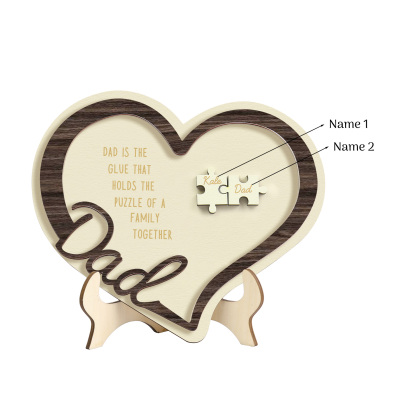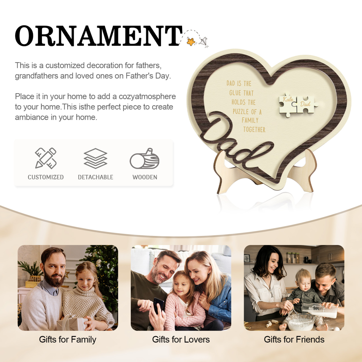 2 Names - Personalized Wooden Ornaments Heart and Puzzle Elements Style Ornaments Home Decor for Dad
