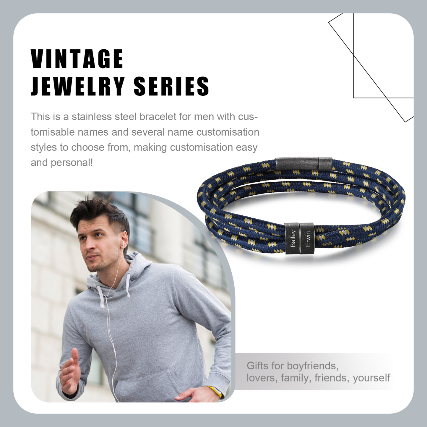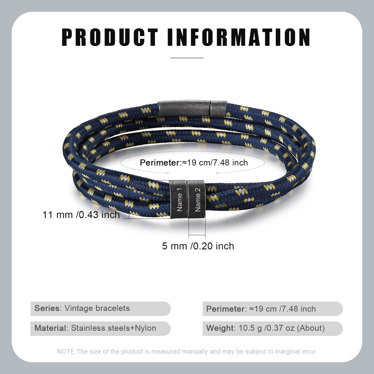 🌟 Elevate your style with this vintage men's bracelet – a distinctive and personalized accessory that allows customization with 2–4 names, adding a truly special touch.