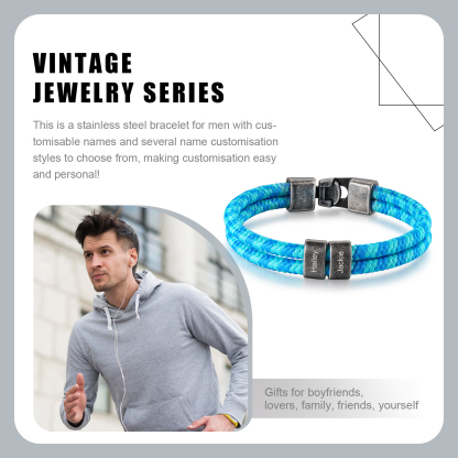 🌟 Elevate your style with this vintage men's bracelet – a distinctive and personalized accessory that allows customization with 2–4 names, adding a truly special touch.