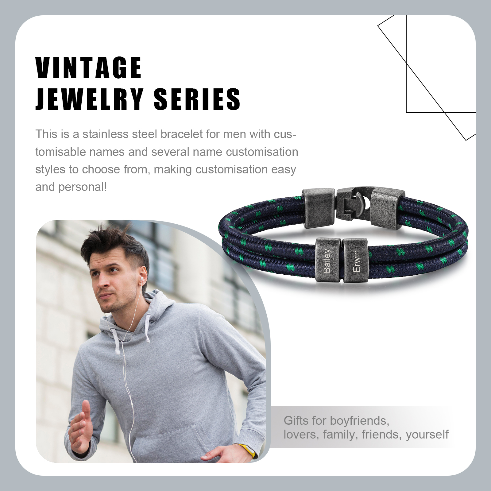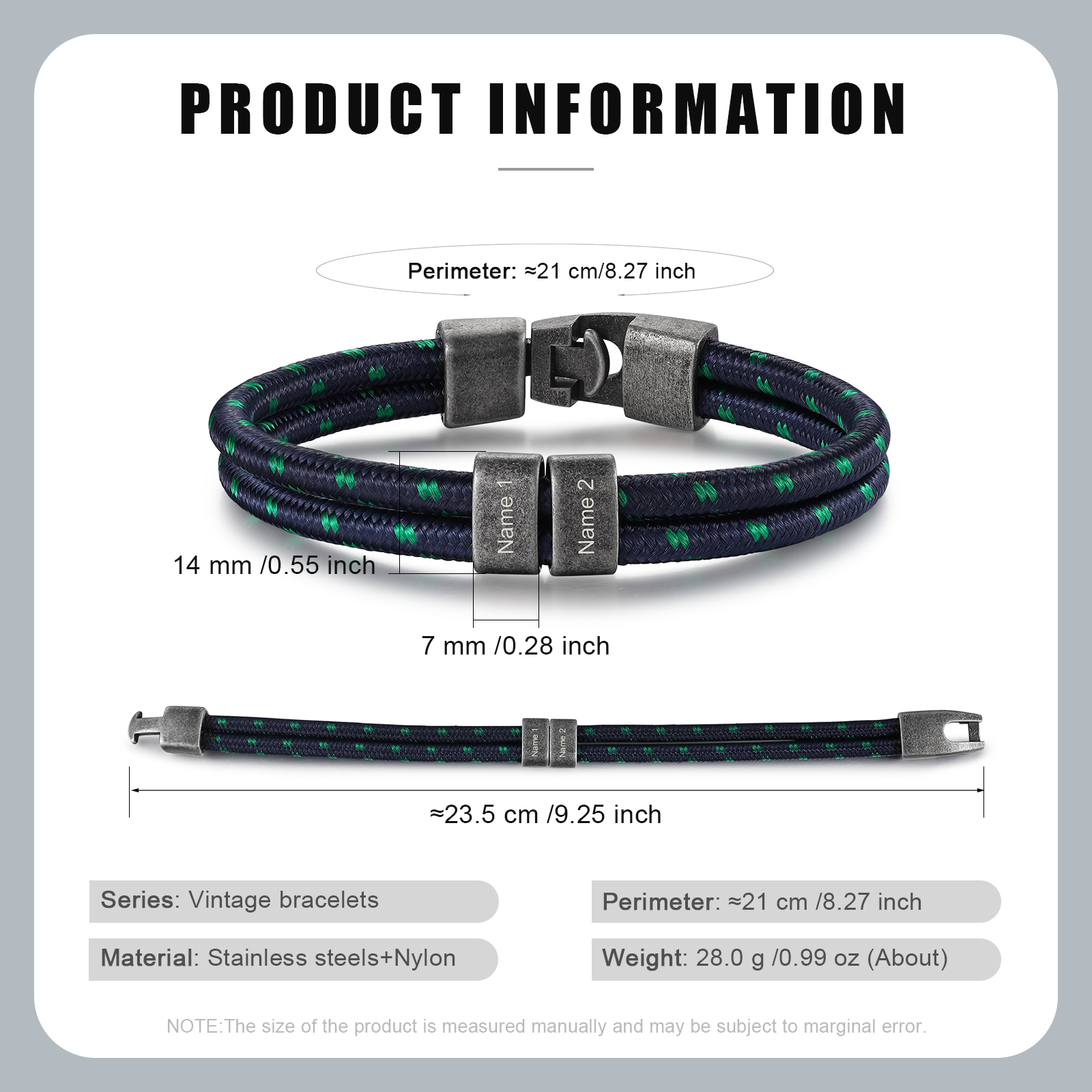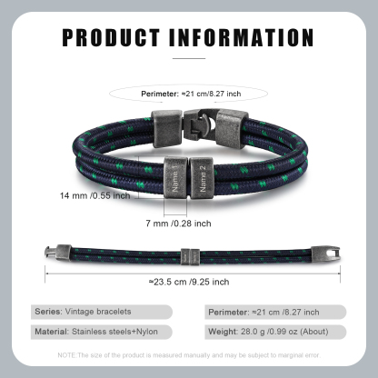 🌟 Elevate your style with this vintage men's bracelet – a distinctive and personalized accessory that allows customization with 2–4 names, adding a truly special touch.