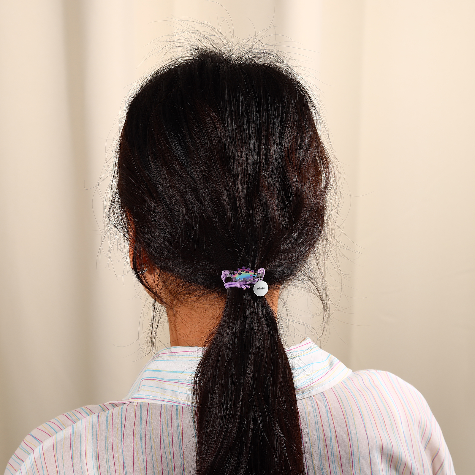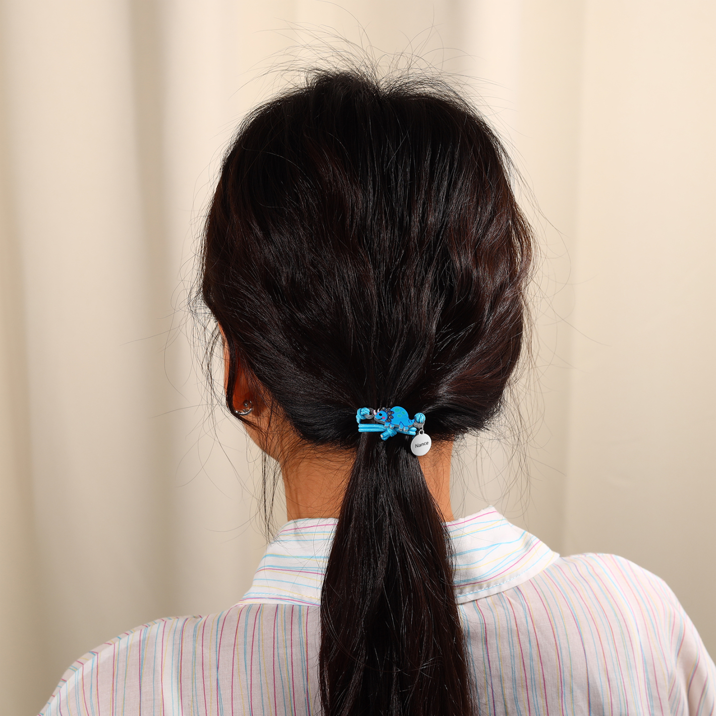 2 PCS Bracelet Set Custom Names Green Dinosaur Charm Hair Ties Back To School Gift for Girls - My Heart Will Be With You Throughout The Day
