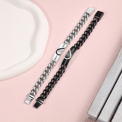 🌟 The set includes two bracelets, each adorned with an infinity symbol and customizable with 2 names of your choice. You can add your and your partner's names to make these bracelets a unique and meaningful gift, emphasizing your special connection.