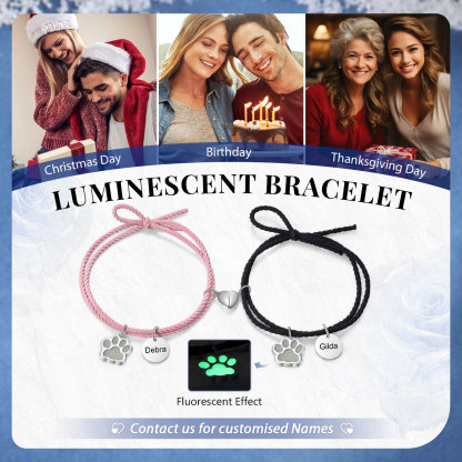 2 PCS Couple's Bracelet Custom Name Engraved Fluorescent Beads Stainless Steel Bracelet Personalized Gift for Him/Her