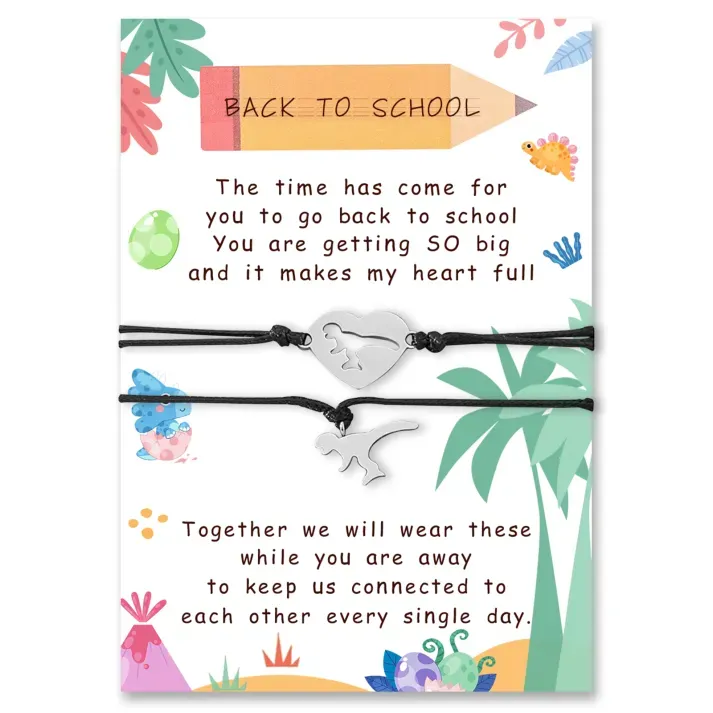 2 Pcs Dinosaur Bracelet Set with Gift Card Adjustable Bracelet Back to School Gifts for Son/Daughter