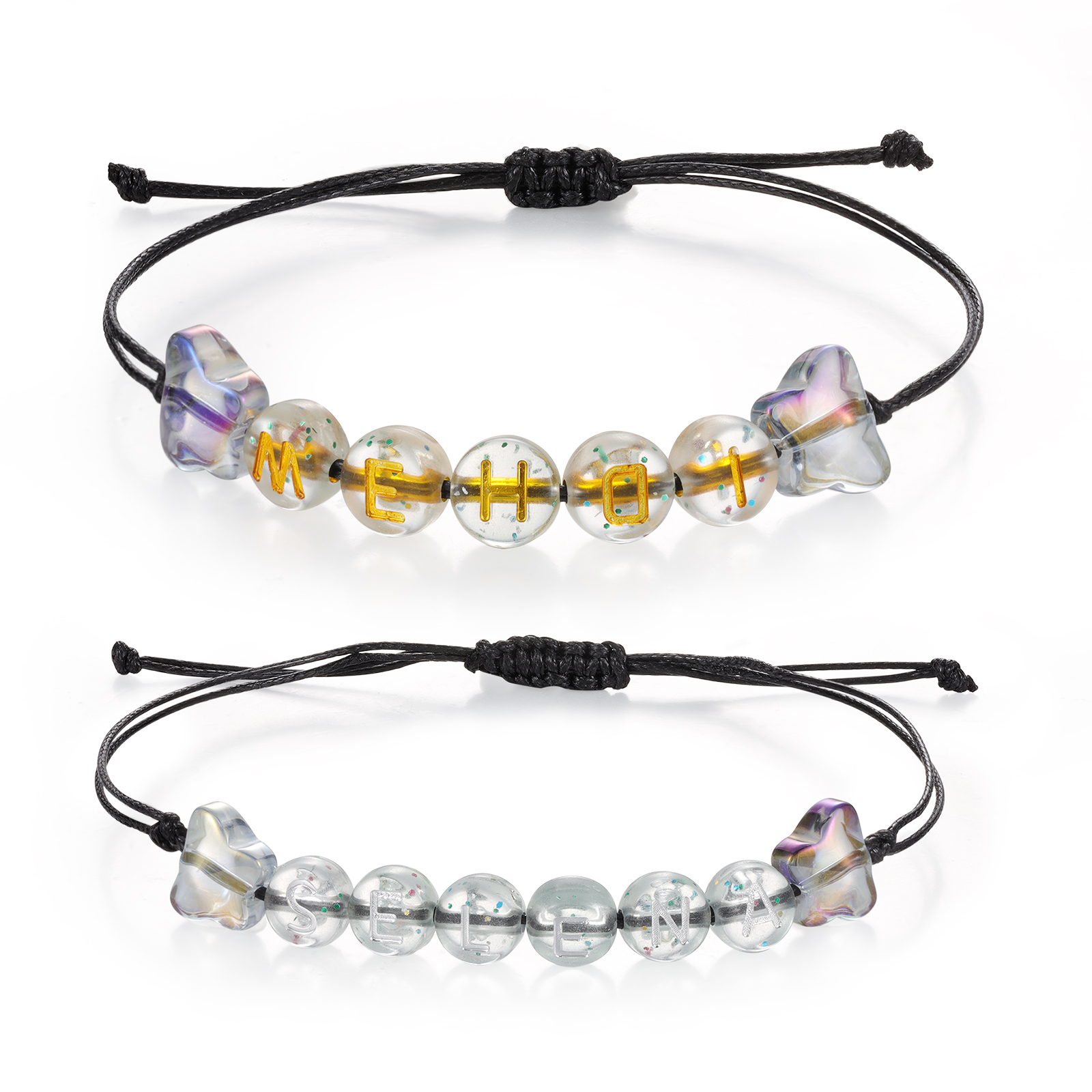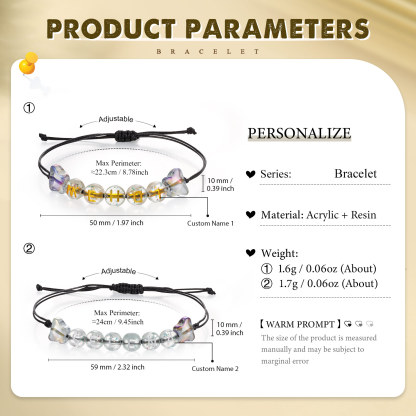 2 PCS- Personalized 2 Name Butterfly Braided Beaded Handmade Bracelet With Gift Box Card, A Back-To-School Gift For Daughter