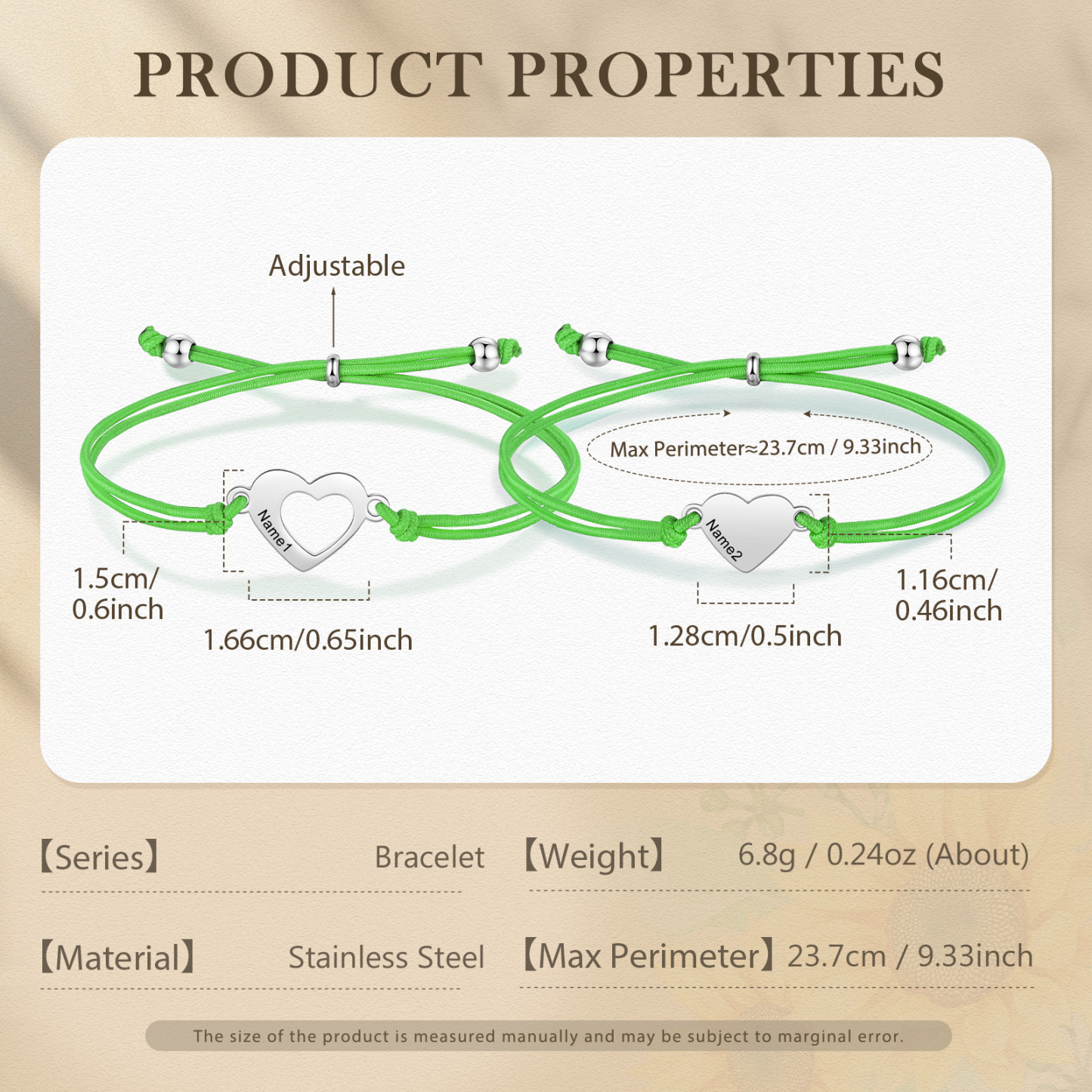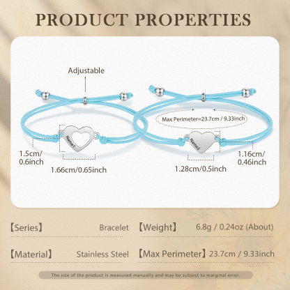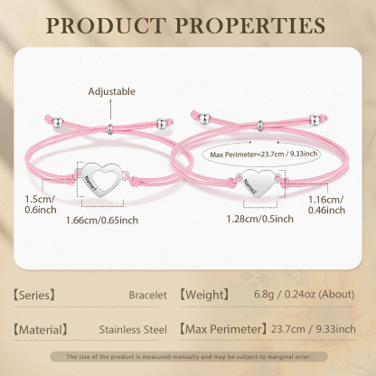 2-PCS Personalized 2 Names Elastic Cord Heart Bracelet, Back To School Gift For Daughter