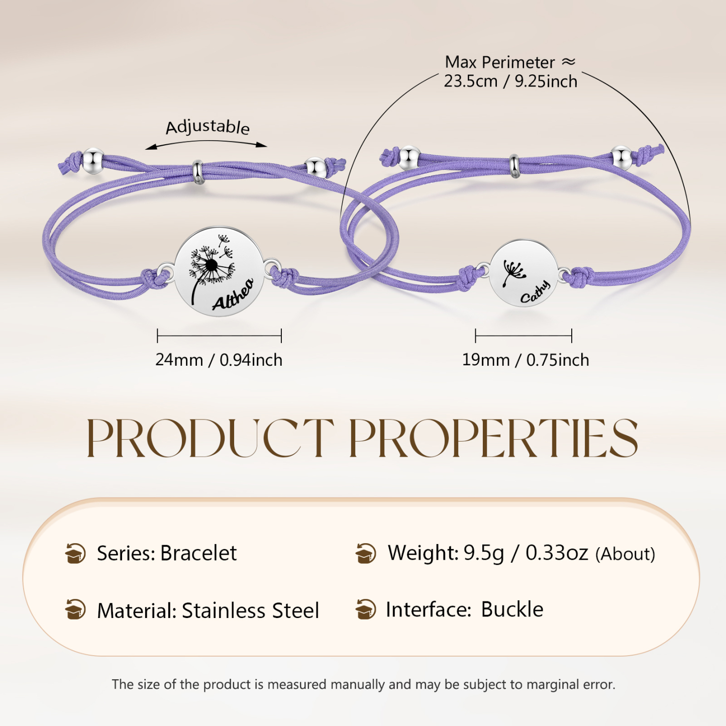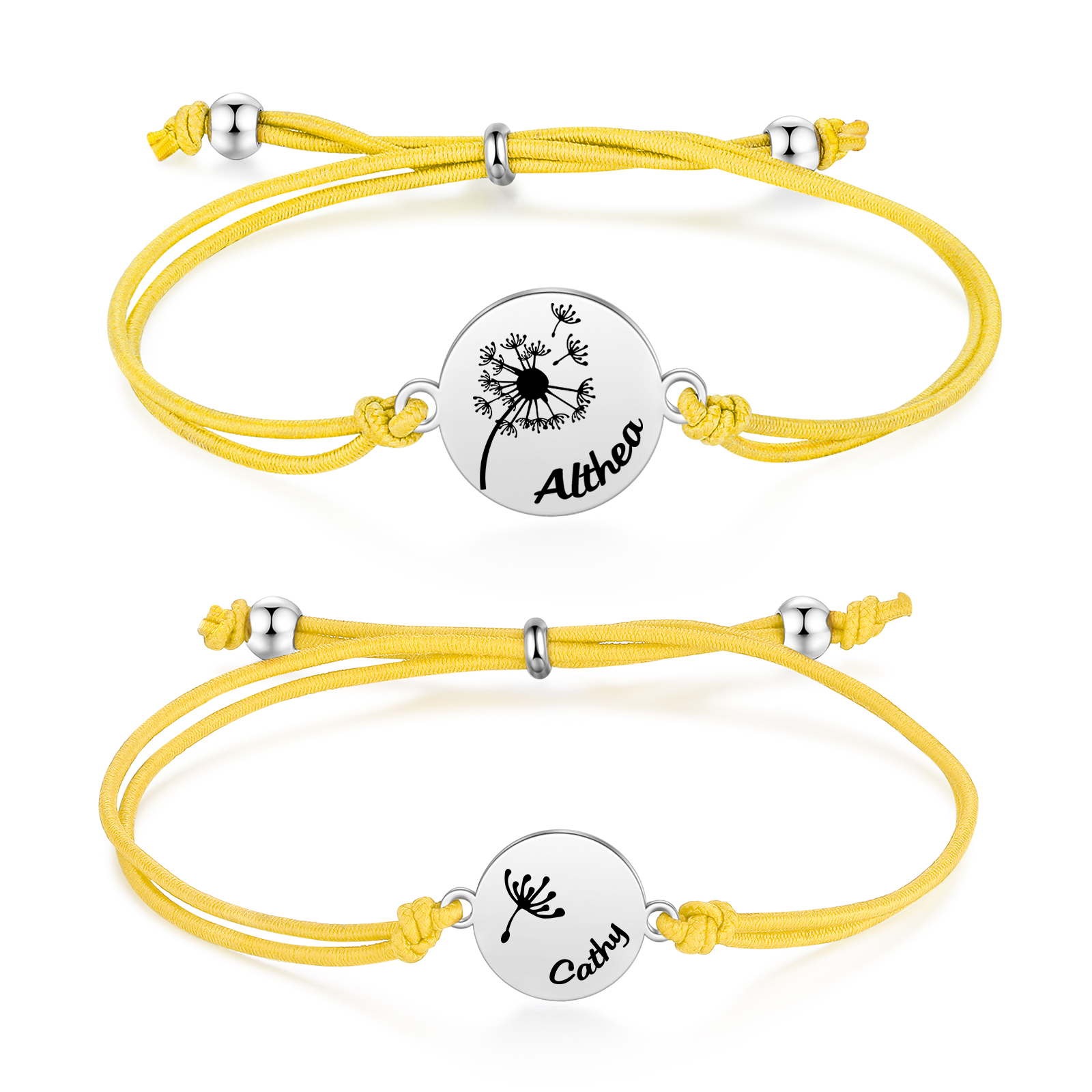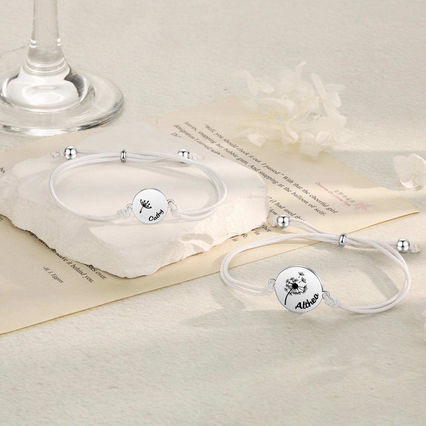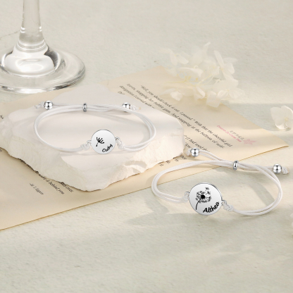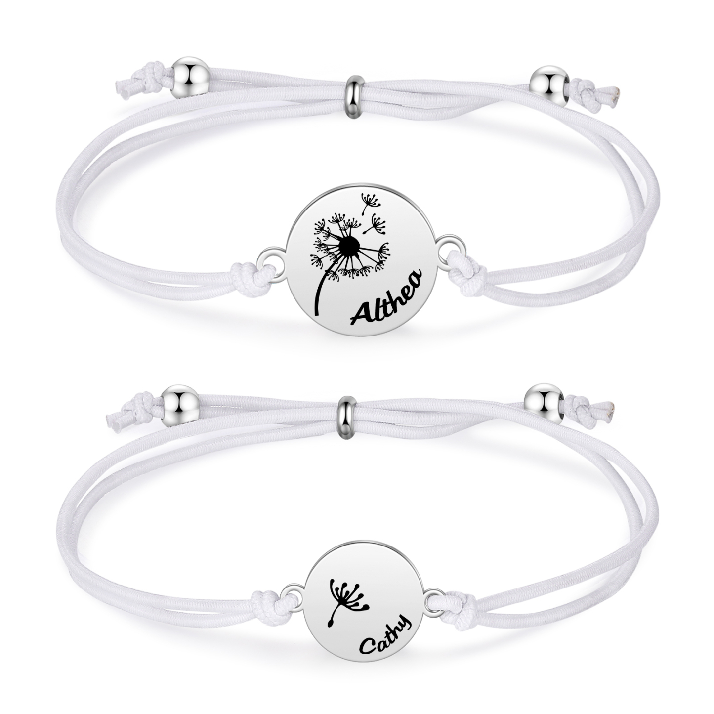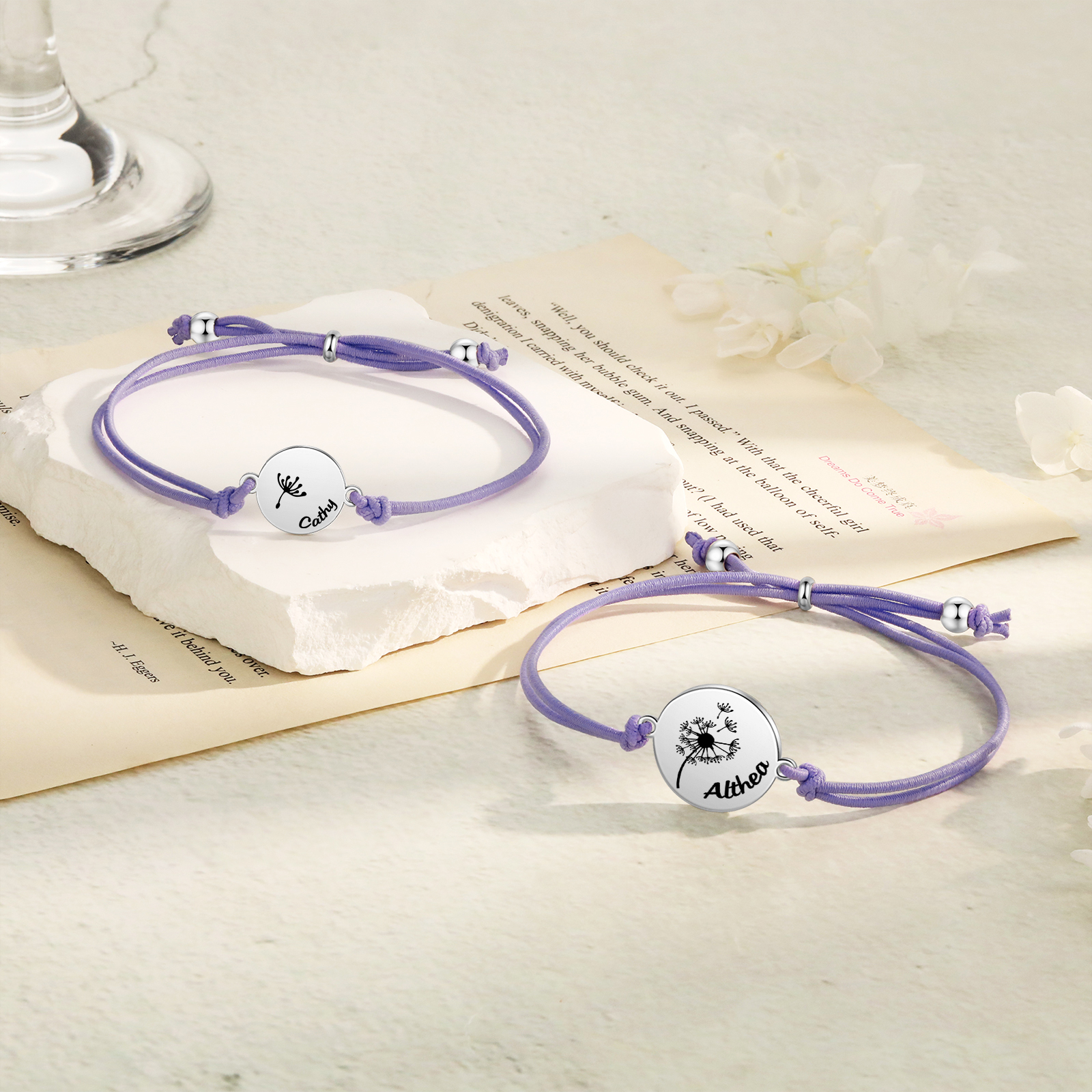 2-PCS Personalized Elastic Cord Bracelet with Dandelion Pattern, Customized with 2 Names, Gift for Daughter