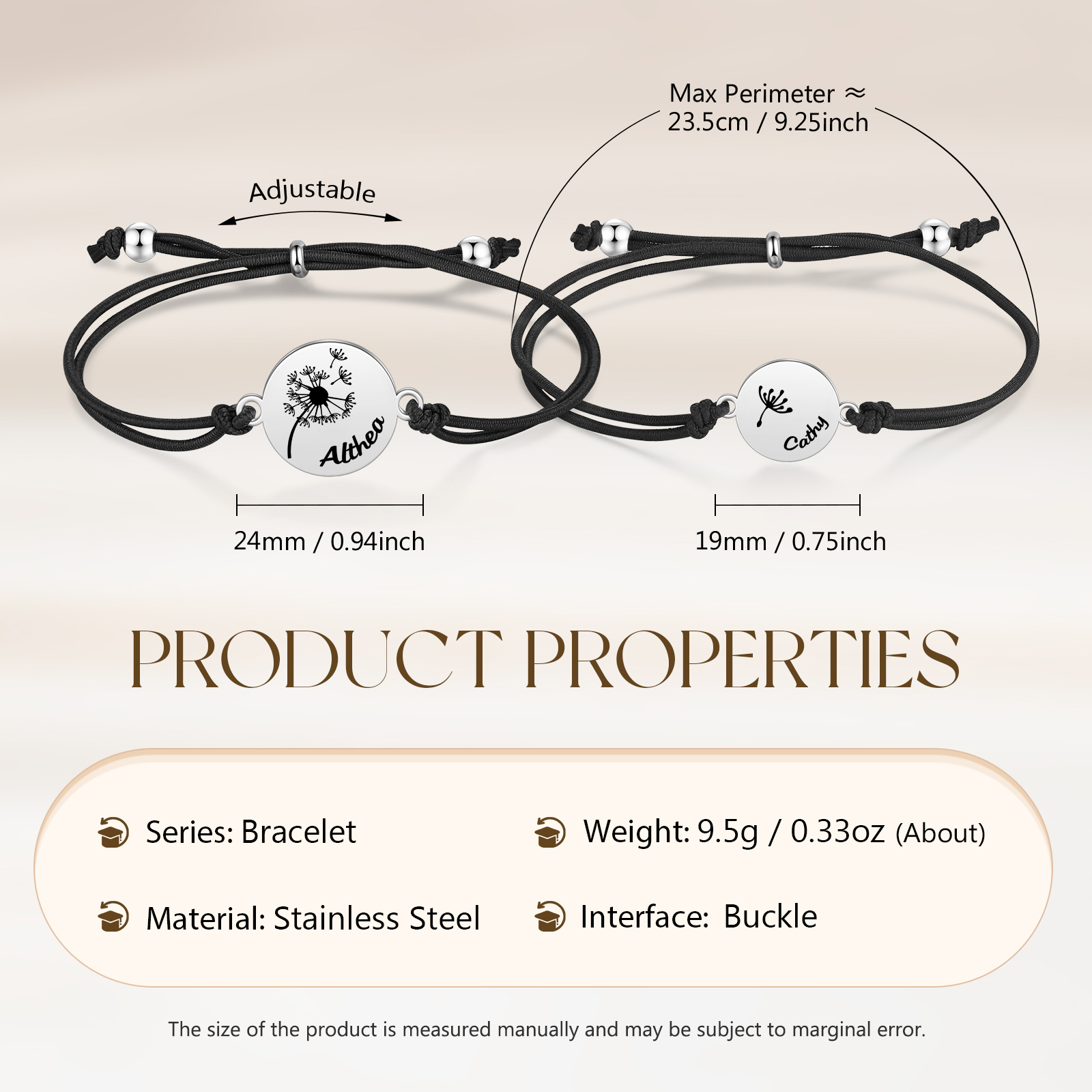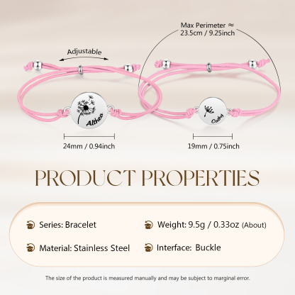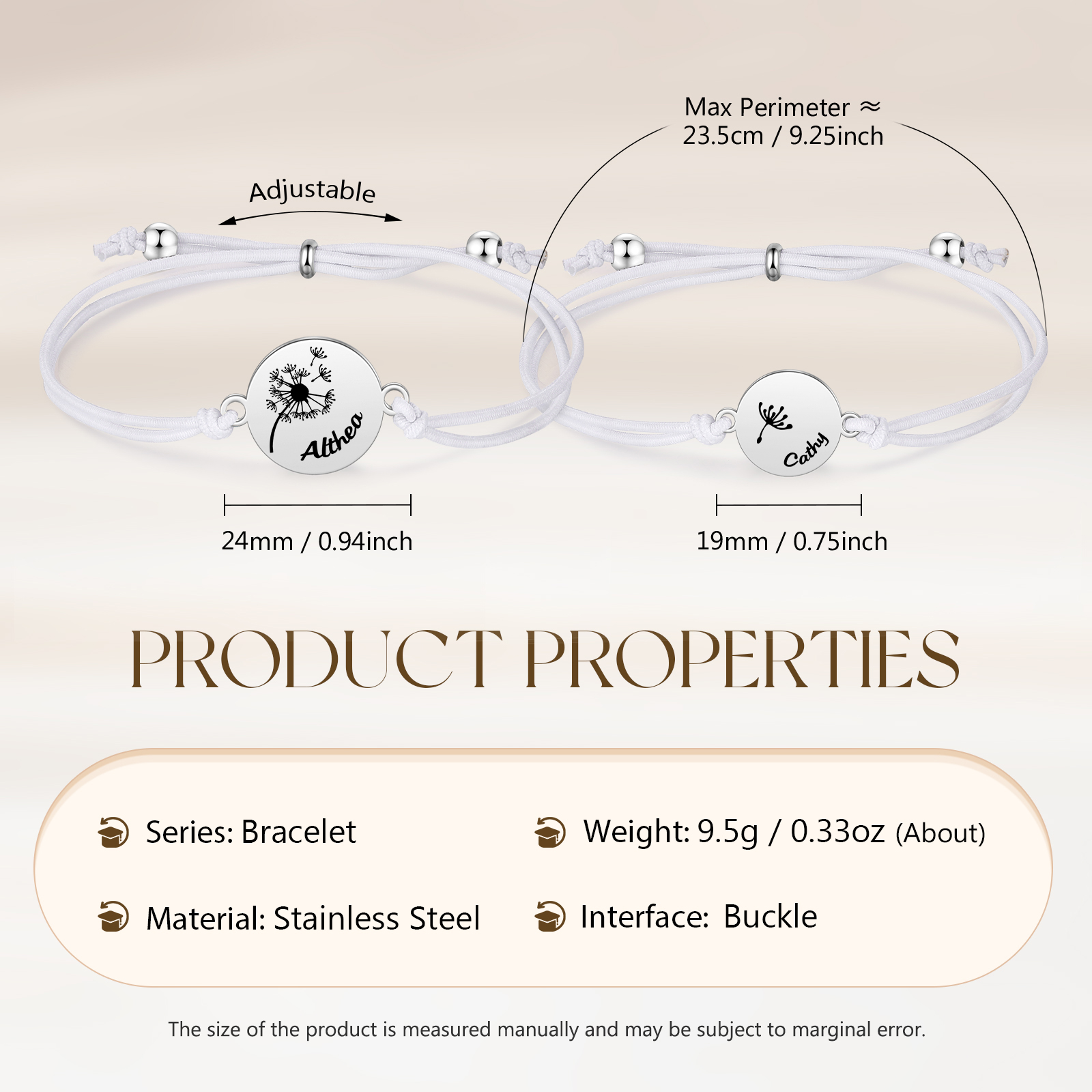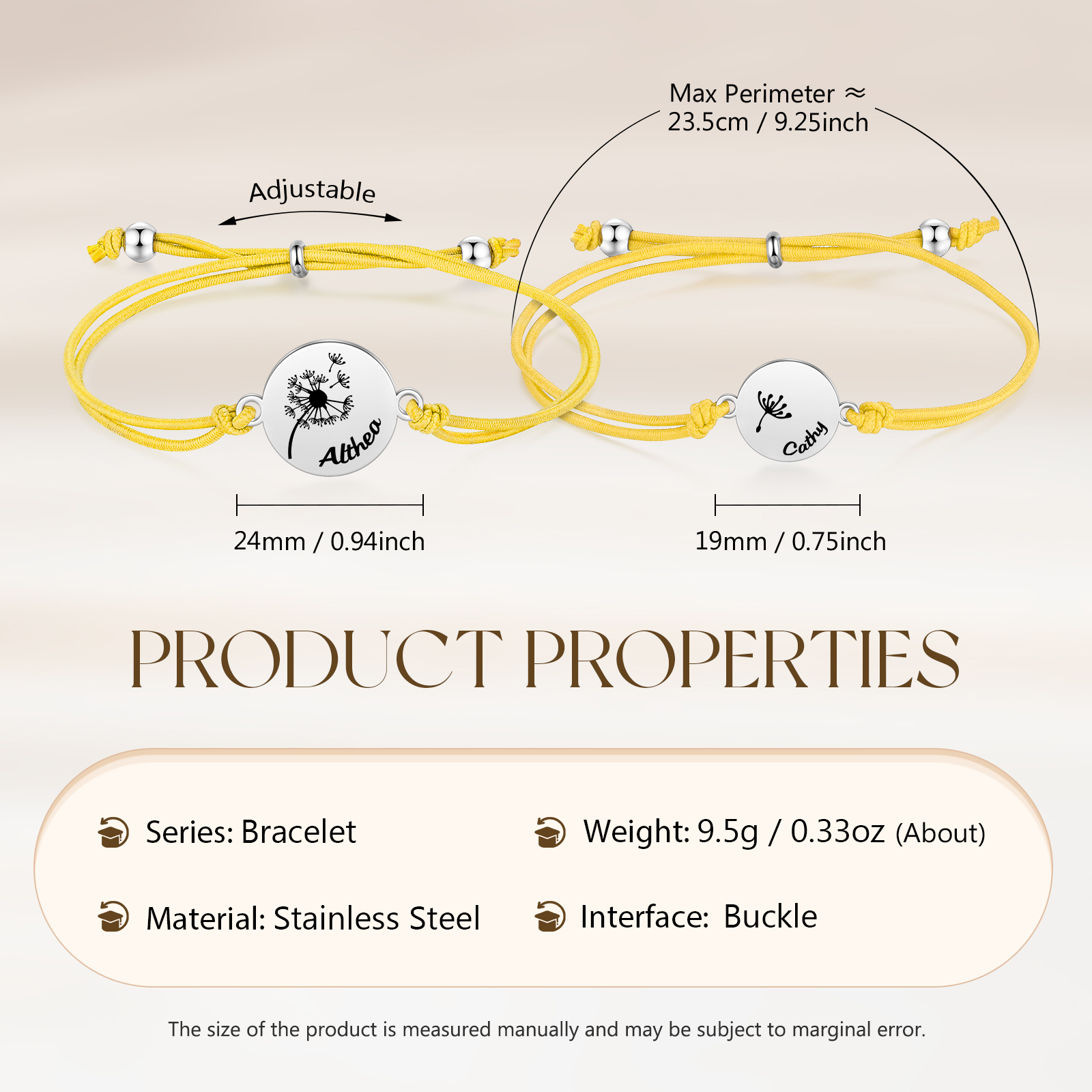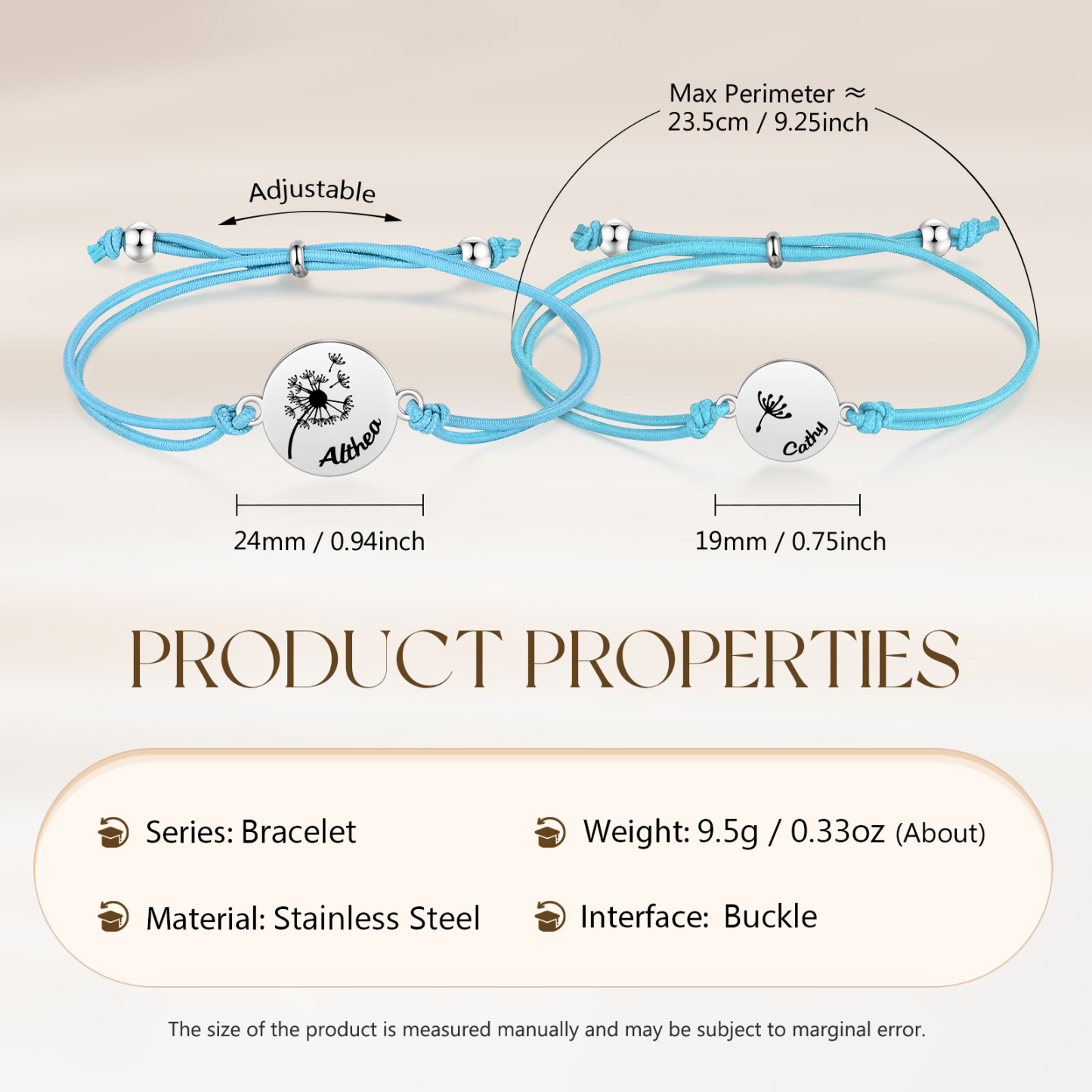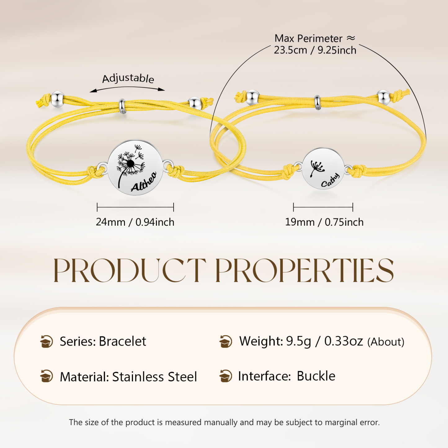 2-PCS Personalized Elastic Cord Bracelet with Dandelion Pattern, Customized with 2 Names, Gift for Daughter