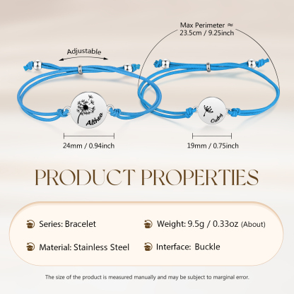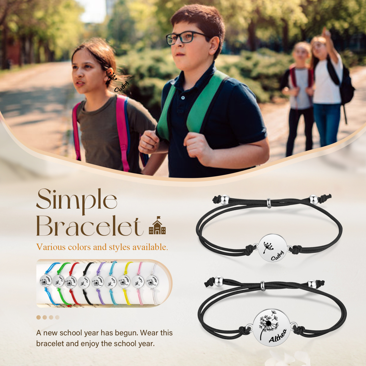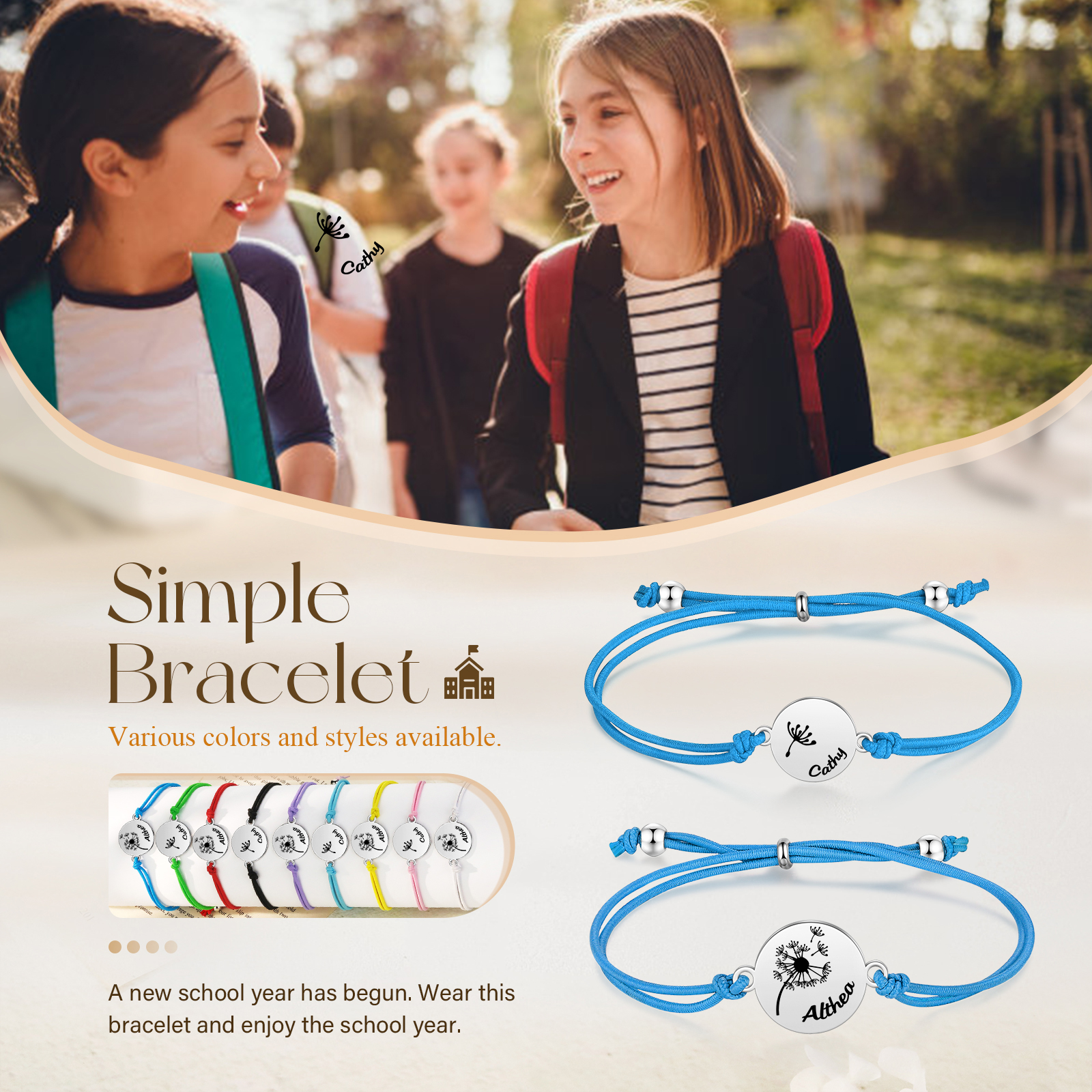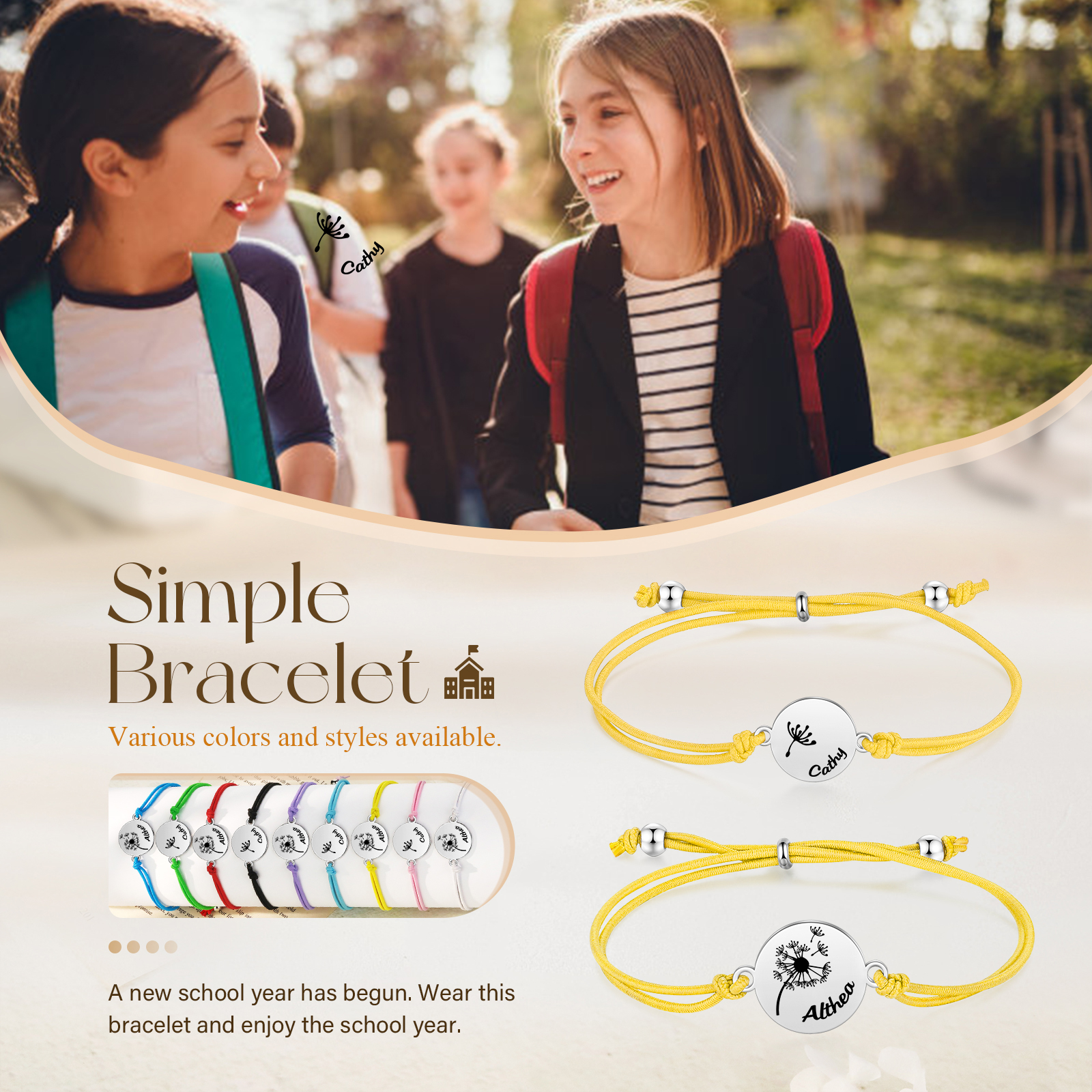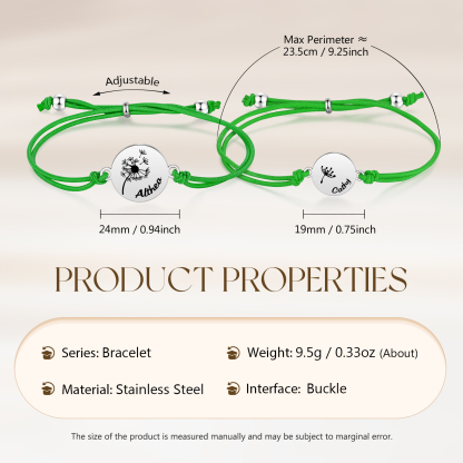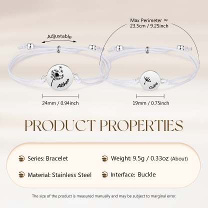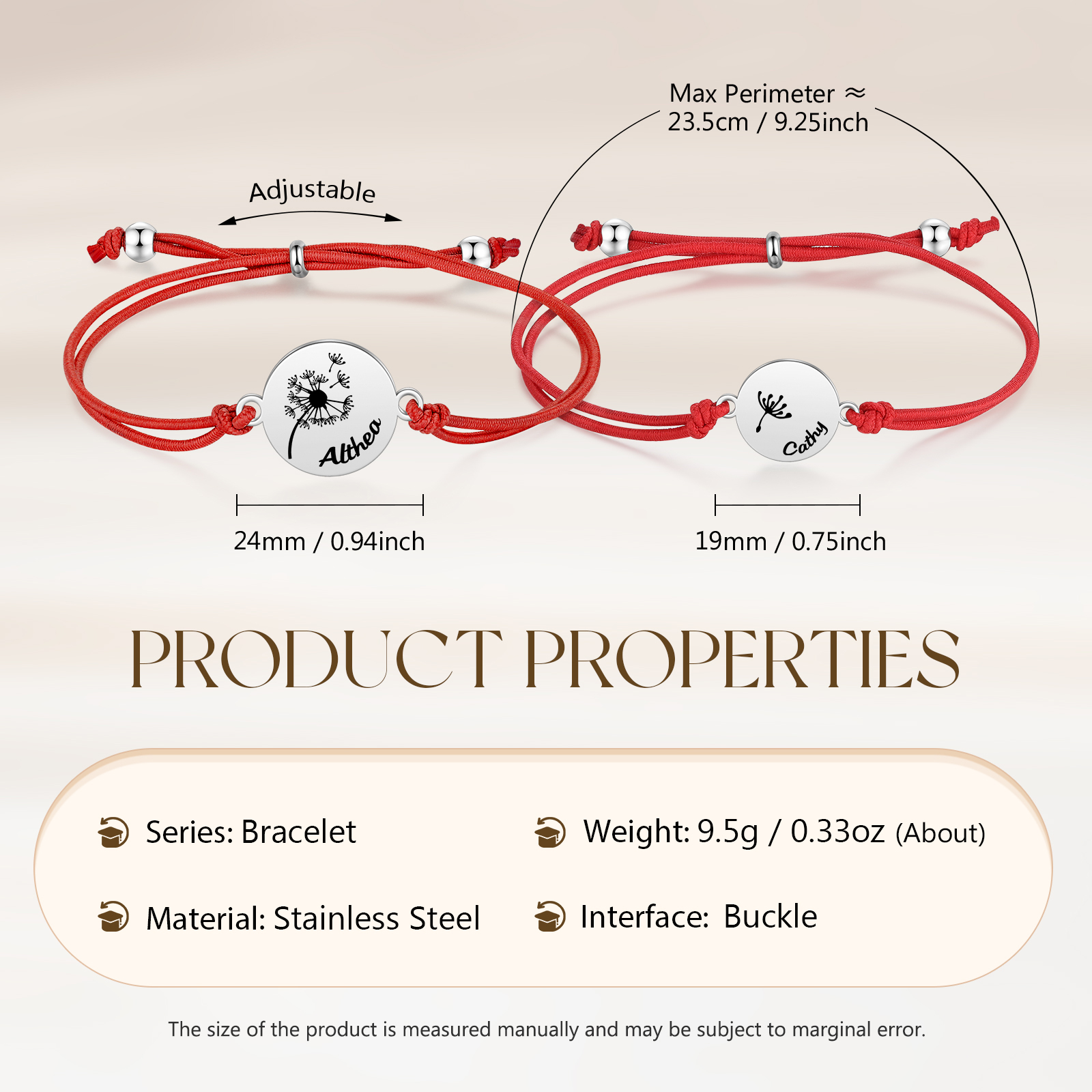 2-PCS Personalized Elastic Cord Bracelet with Dandelion Pattern, Customized with 2 Names, Gift for Daughter