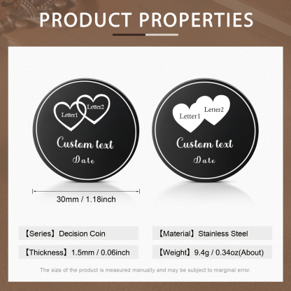 Romance is forever, love is fixed. We bring you a new stainless steel coin customization service. Whether it's an important anniversary, a birthday, or just a token of love, this customizable coin will be a testament to your love story. Beautiful and durable, these coins are crafted from high-quality stainless steel to ensure long-lasting luster and texture. You can choose to have your name, date, or special text engraved on the coin to make it even more personal. Give love a deeper meaning and start customizing your own coins today, using them to forever engrave the true feelings between you and your loved one.
