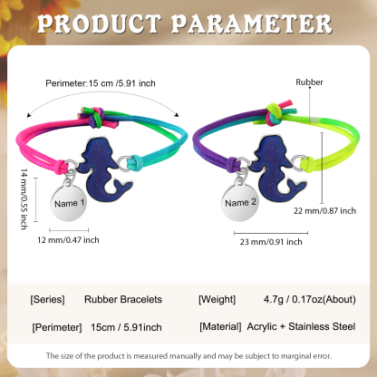 2 Pcs Personalized Name Color Changing Bracelets Cute Cartoon Animal Mermaid Stretch Bracelet Set Back to School Gift for Girls