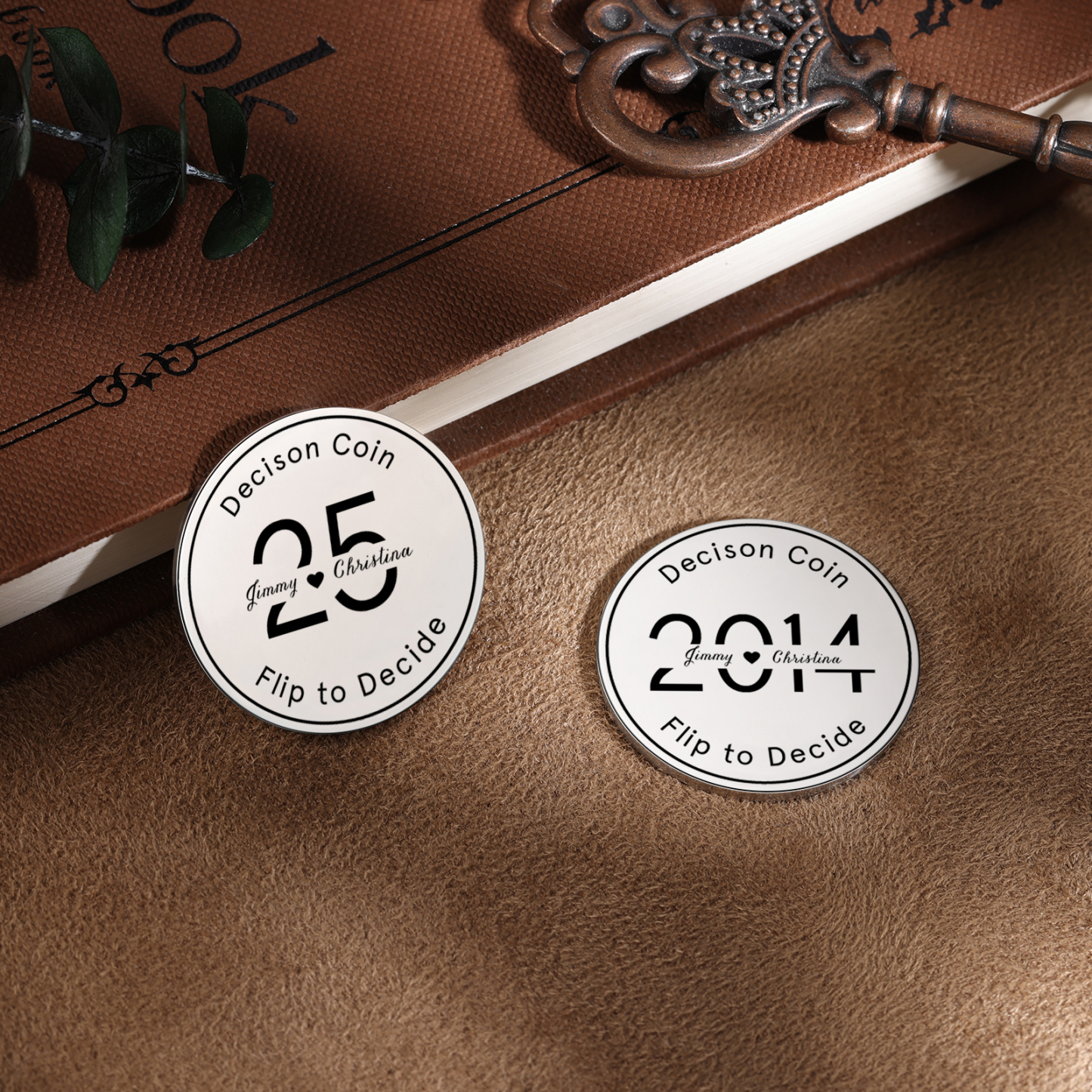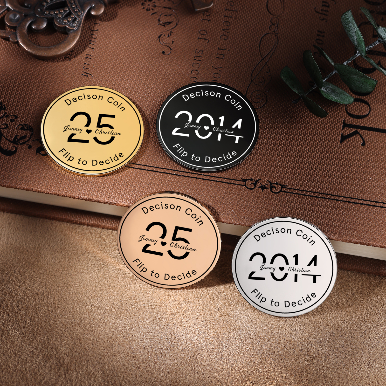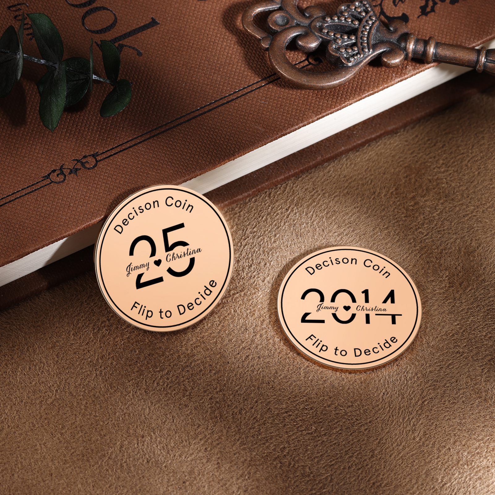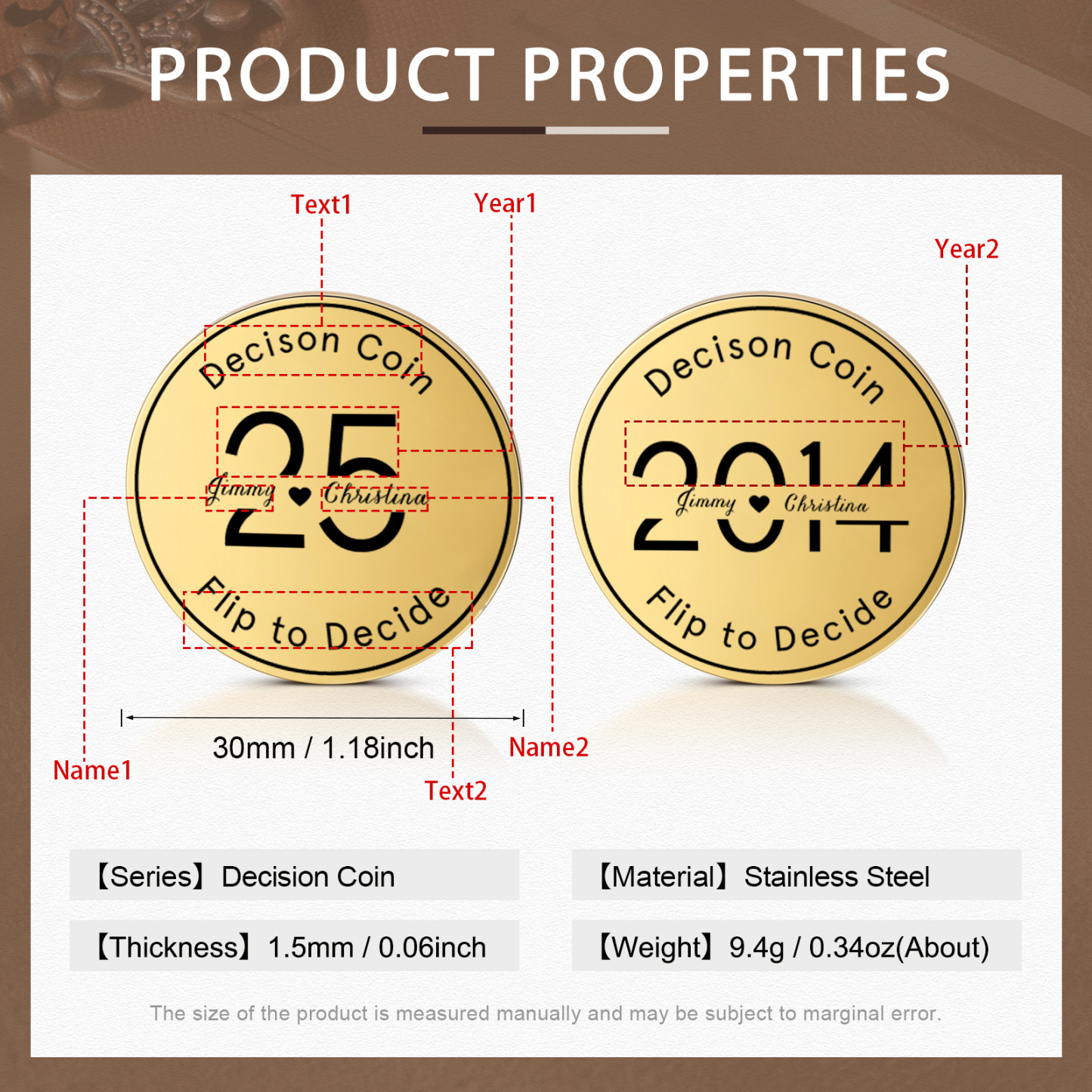 2 PCS Personalized Name Stainless Steel Anniversary Coin Custom Text And Year Special Gift