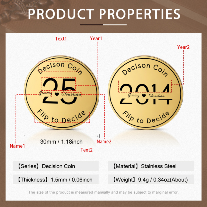 Romance is forever, love is fixed. We bring you a new stainless steel coin customization service. Whether it's an important anniversary, a birthday, or just a token of love, this customizable coin will be a testament to your love story. Beautiful and durable, these coins are crafted from high-quality stainless steel to ensure long-lasting luster and texture. You can choose to have your name, date, or special text engraved on the coin to make it even more personal. Give love a deeper meaning and start customizing your own coins today, using them to forever engrave the true feelings between you and your loved one.