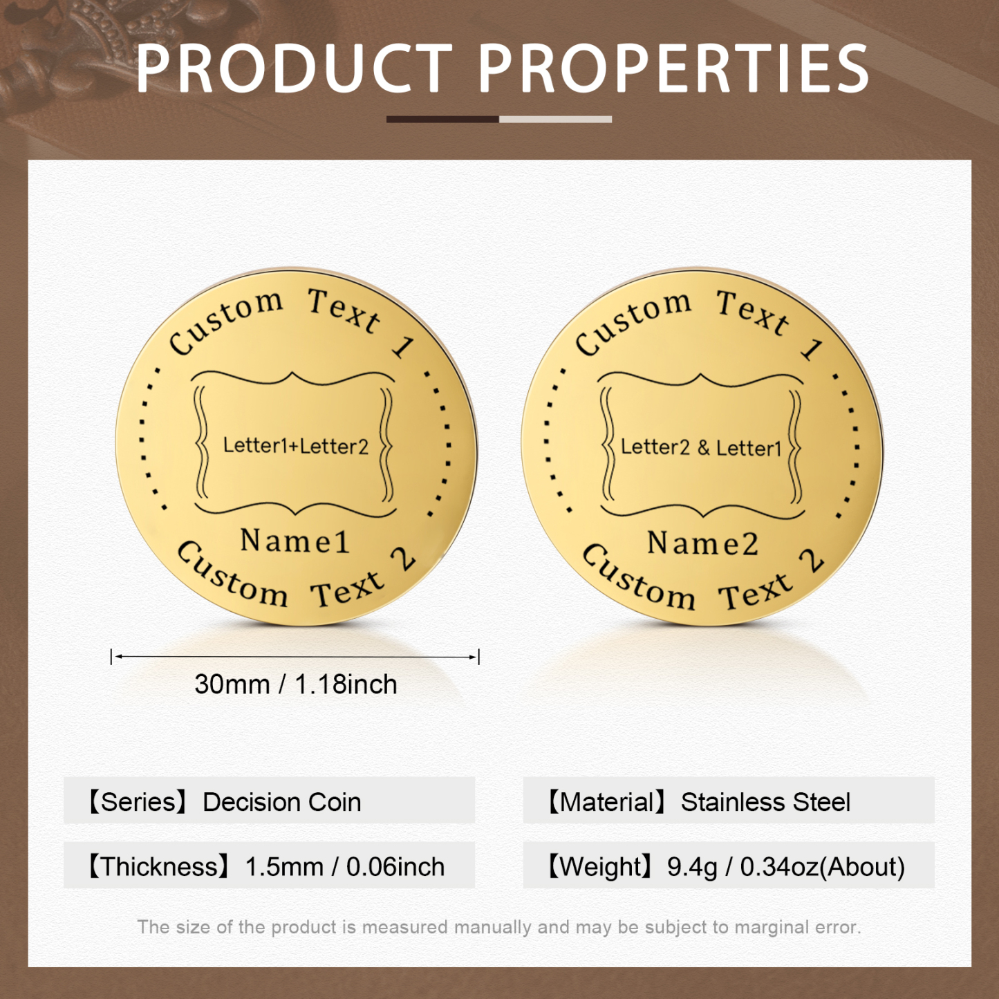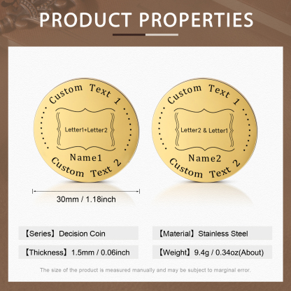 Romance is forever, love is fixed. We bring you a new stainless steel coin customization service. Whether it's an important anniversary, a birthday, or just a token of love, this customizable coin will be a testament to your love story. Beautiful and durable, these coins are crafted from high-quality stainless steel to ensure long-lasting luster and texture. You can choose to have your name, date, or special text engraved on the coin to make it even more personal. Give love a deeper meaning and start customizing your own coins today, using them to forever engrave the true feelings between you and your loved one.