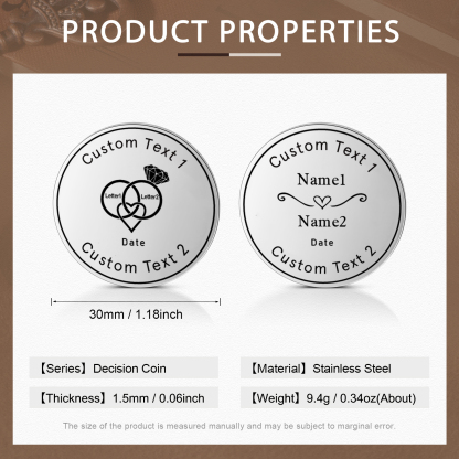 2 PCS Personalized Name Stainless Steel Couple Coin Custom Text And Date Special Gift