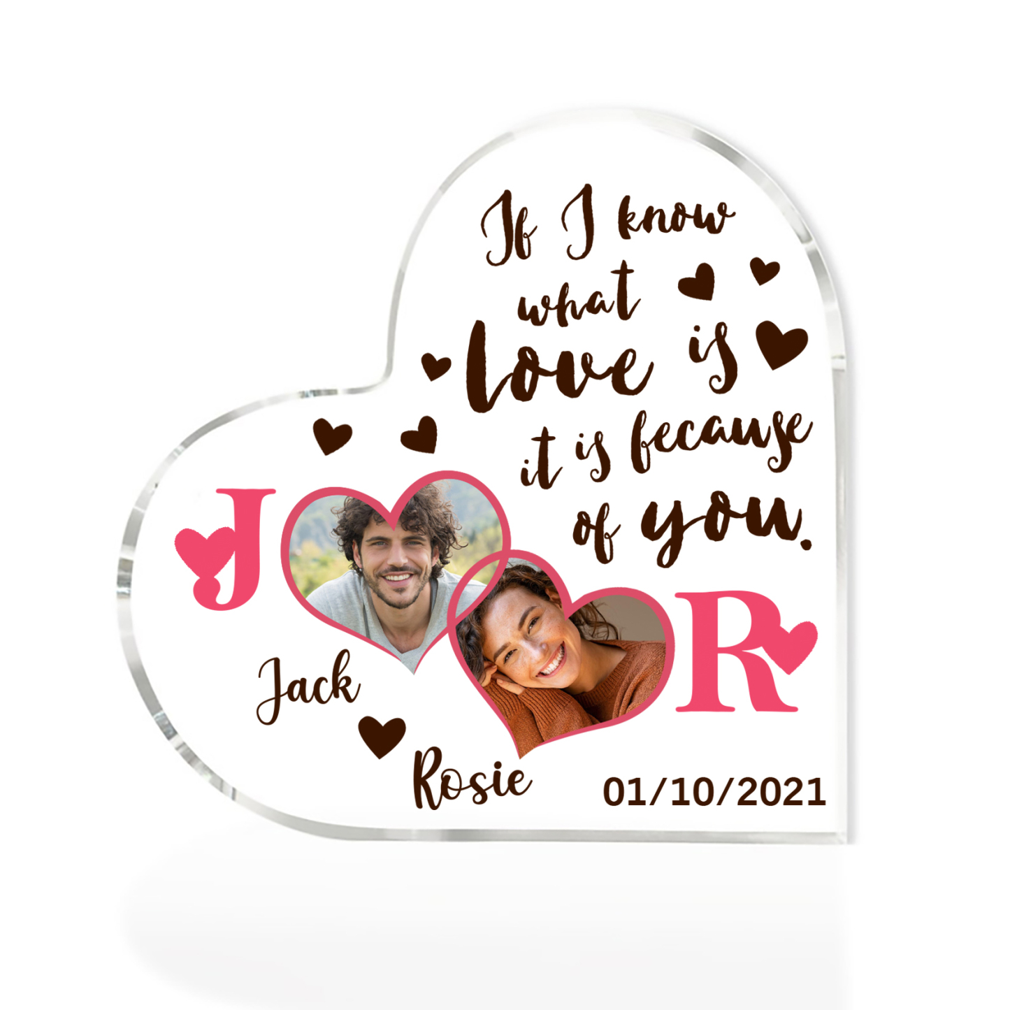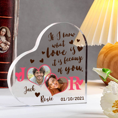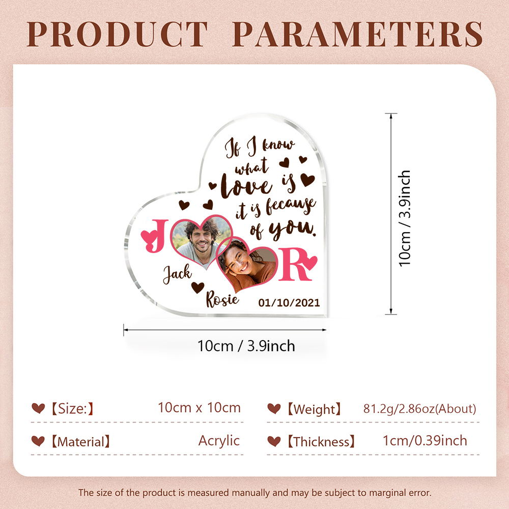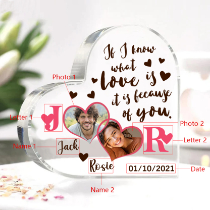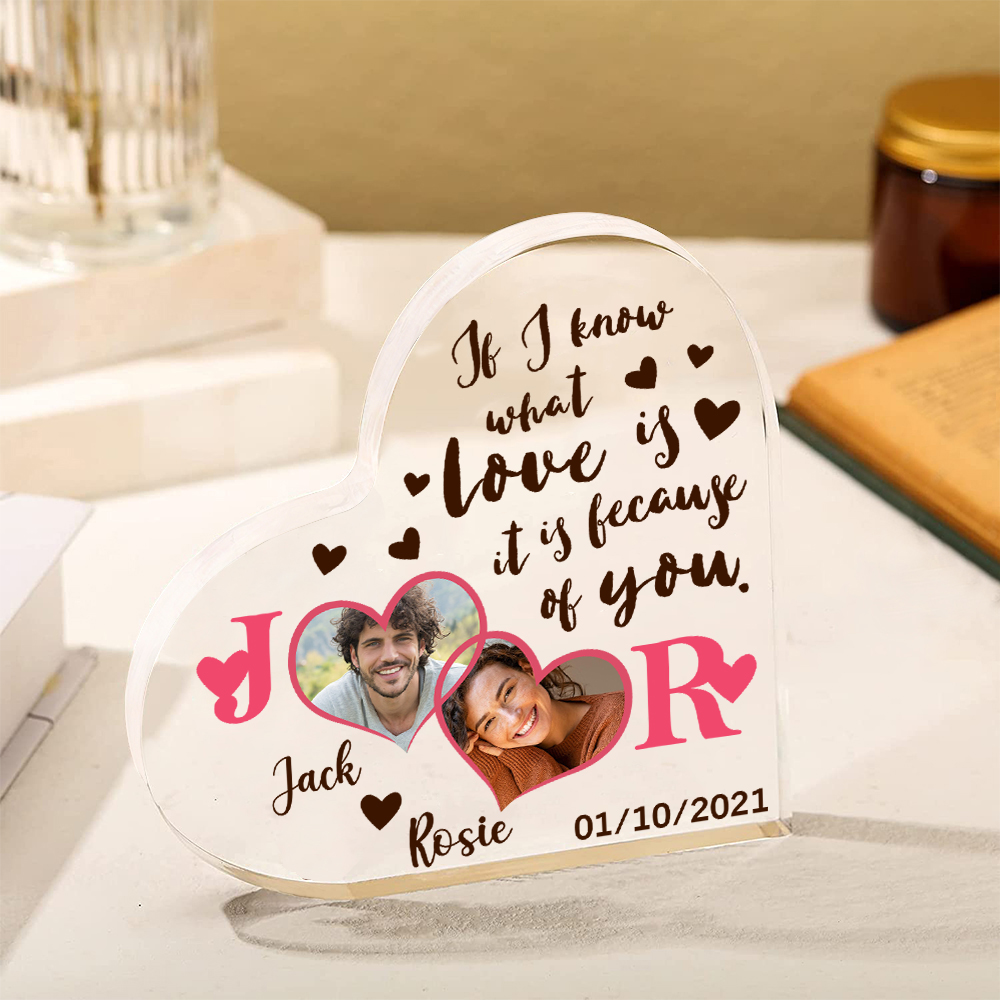 2 Photos-Personalized Couple Acrylic Ornament-Custom Acrylic Heart Keepsake Desktop Ornament for Couple