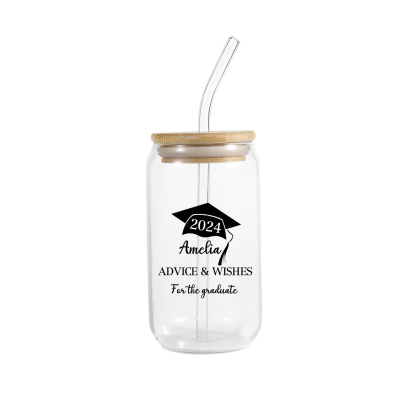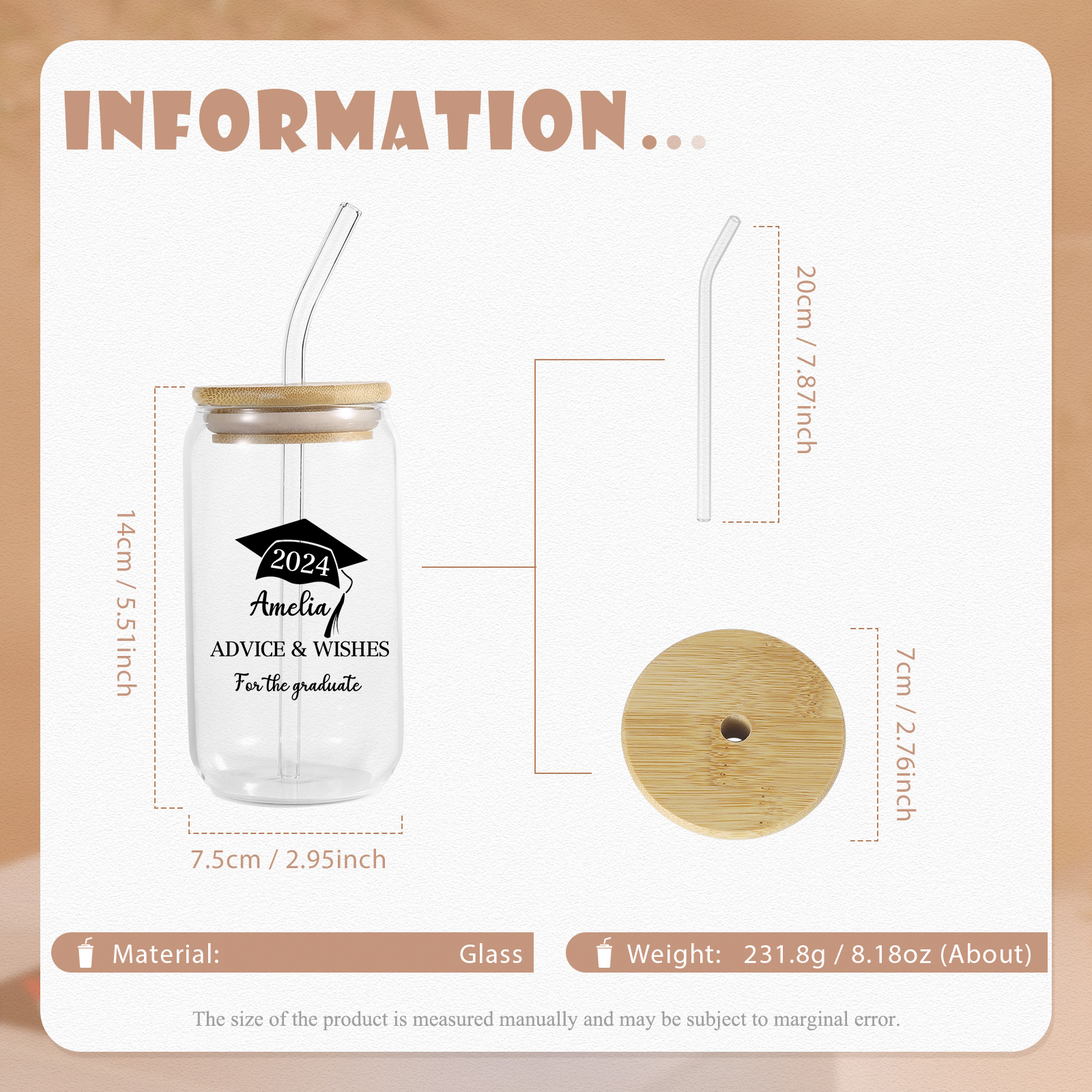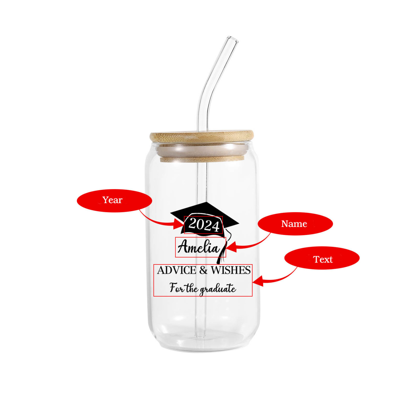 2024 Graduation Gift - Personalized Custom Text, Name and Year Glass with Glass Straw
