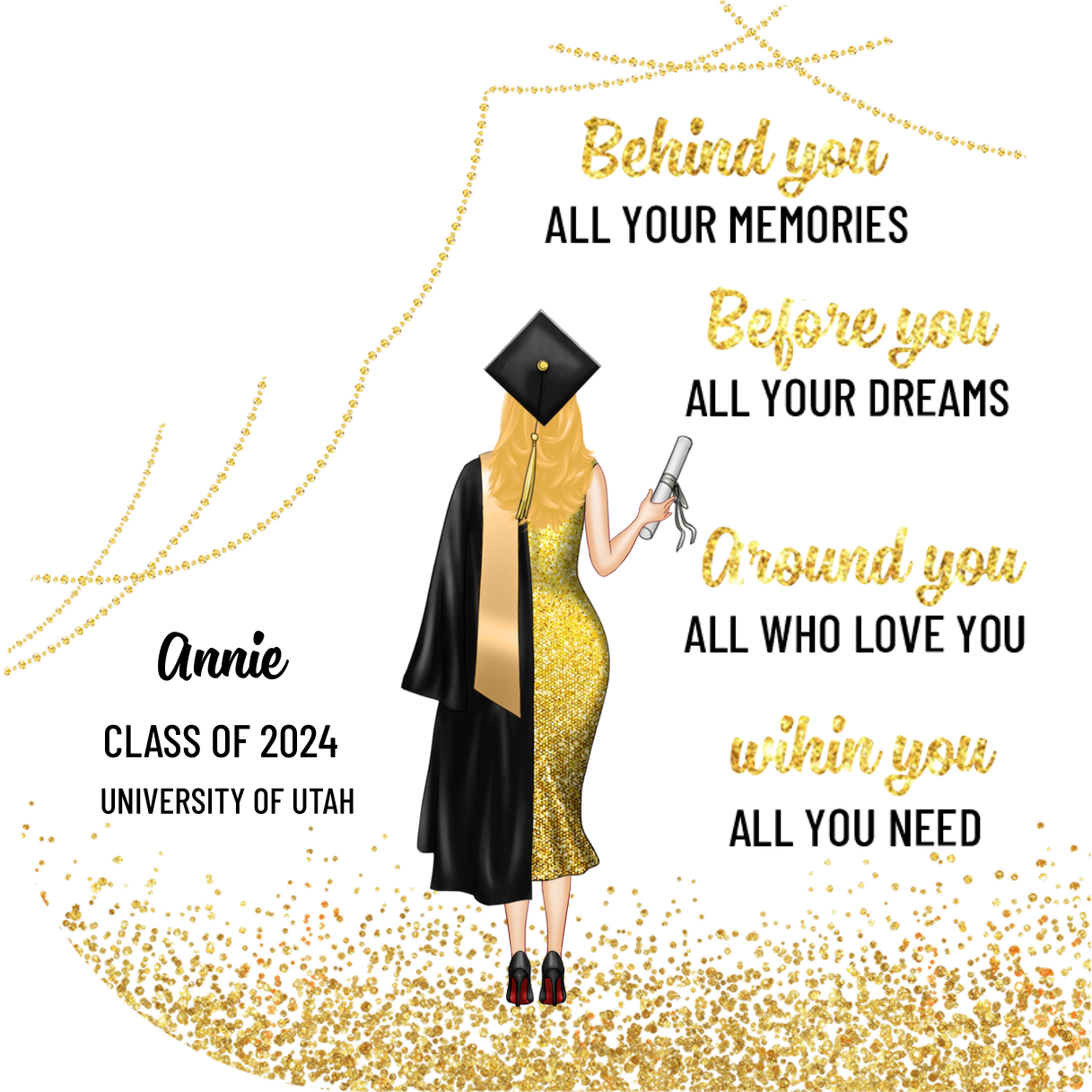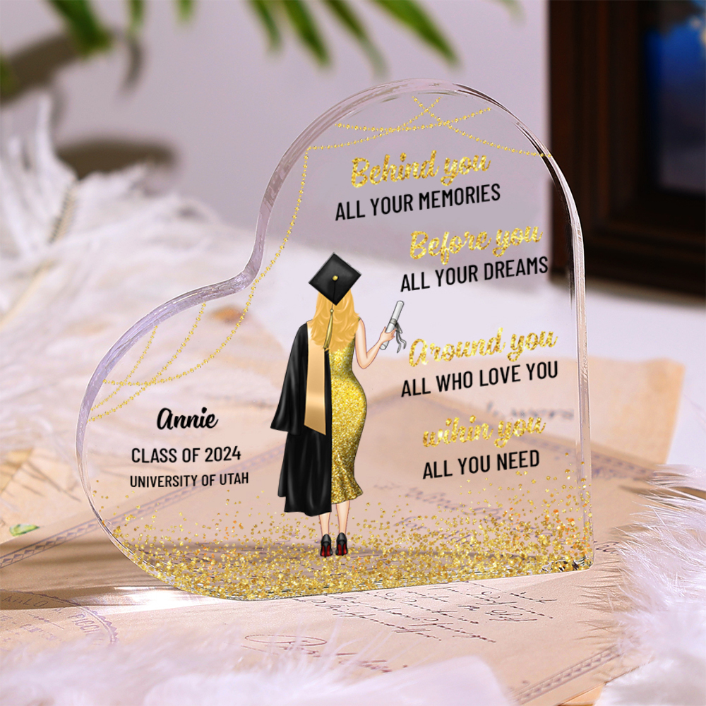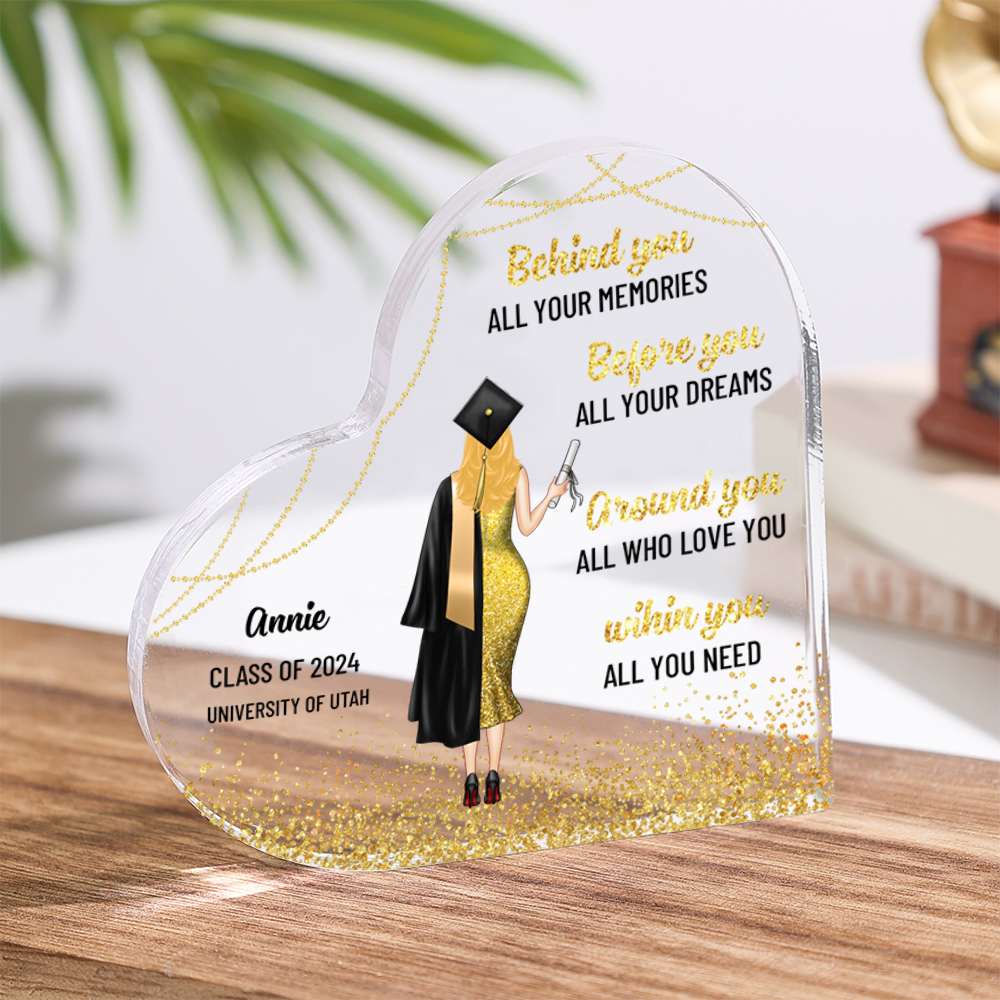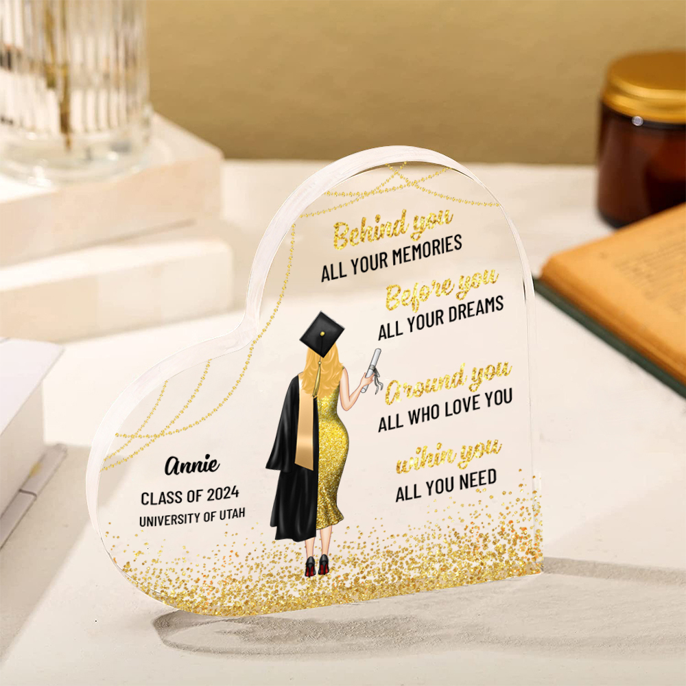 2024 Graduation Gift - Personalized Name and 2 Text Acrylic Heart Decoration for Her