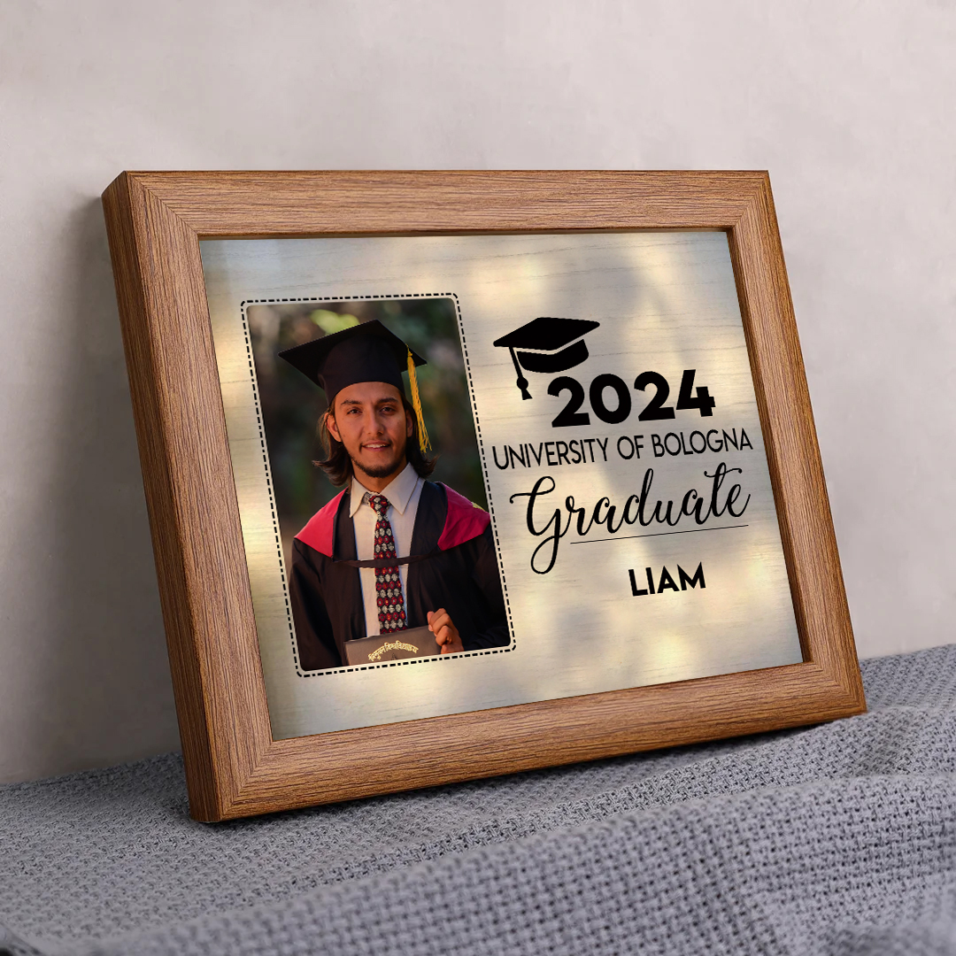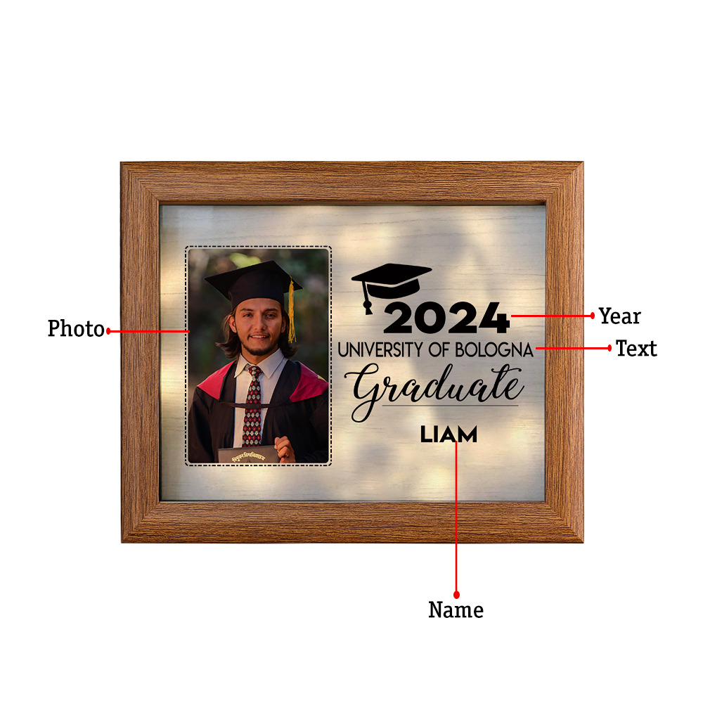🎓 Graduation is a snapshot of your success! 📸✨ Customize this special moment with our personalized graduation photo frame. 🌟 Add your favorite photo, text, name, and year to create a timeless keepsake for the graduate. 🎓 Capture the memories, celebrate the achievements, and cherish the journey with this unique gift! 🎁