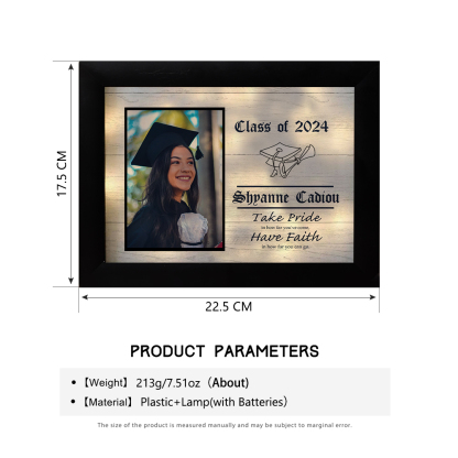 🎓 Graduation is a snapshot of your success! 📸✨ Customize this special moment with our personalized graduation photo frame. 🌟 Add your favorite photo,name, and year to create a timeless keepsake for the graduate. 🎓 Capture the memories, celebrate the achievements, and cherish the journey with this unique gift! 🎁
