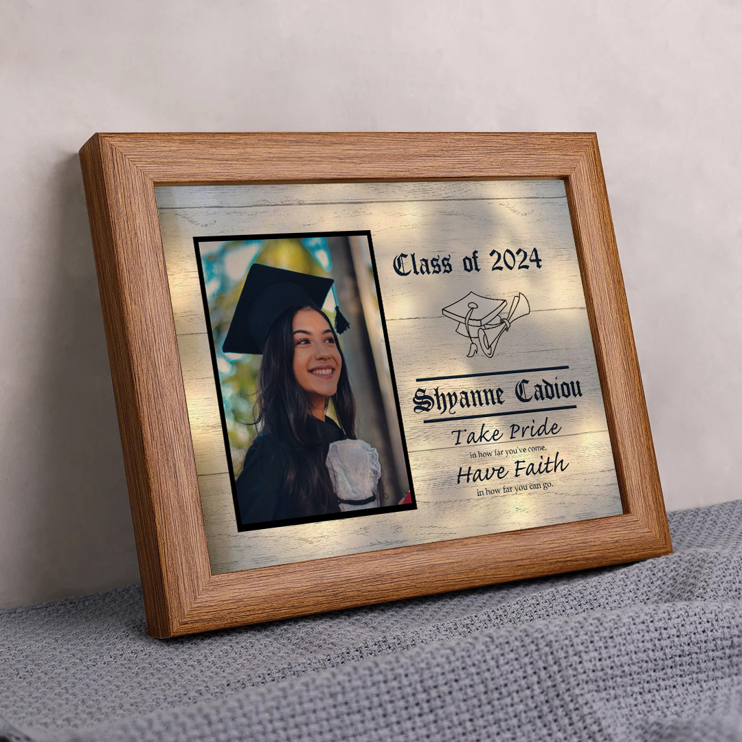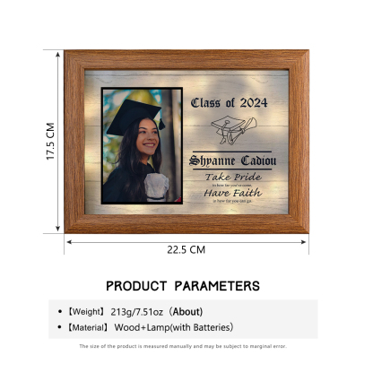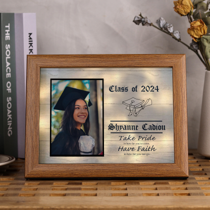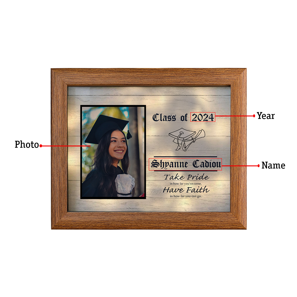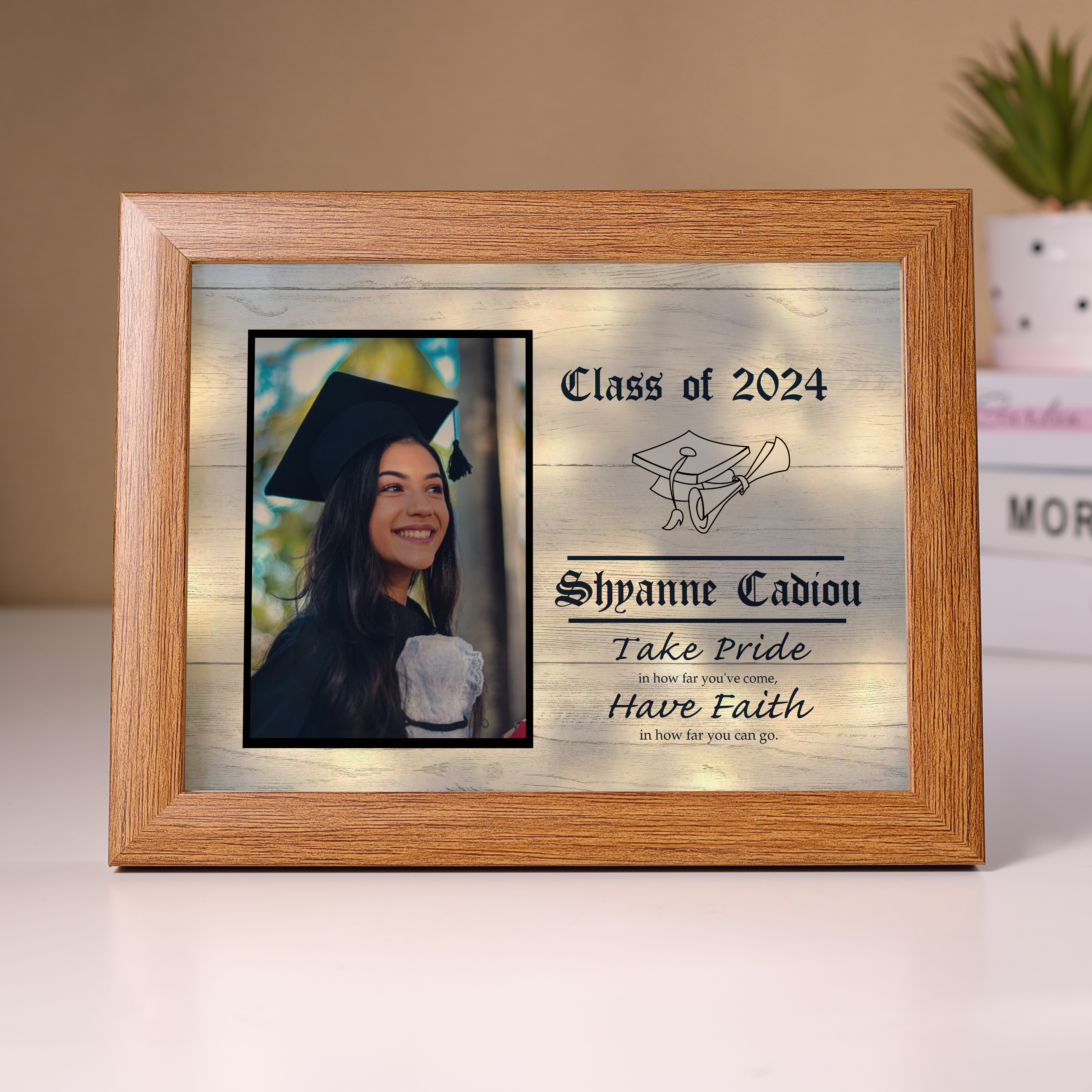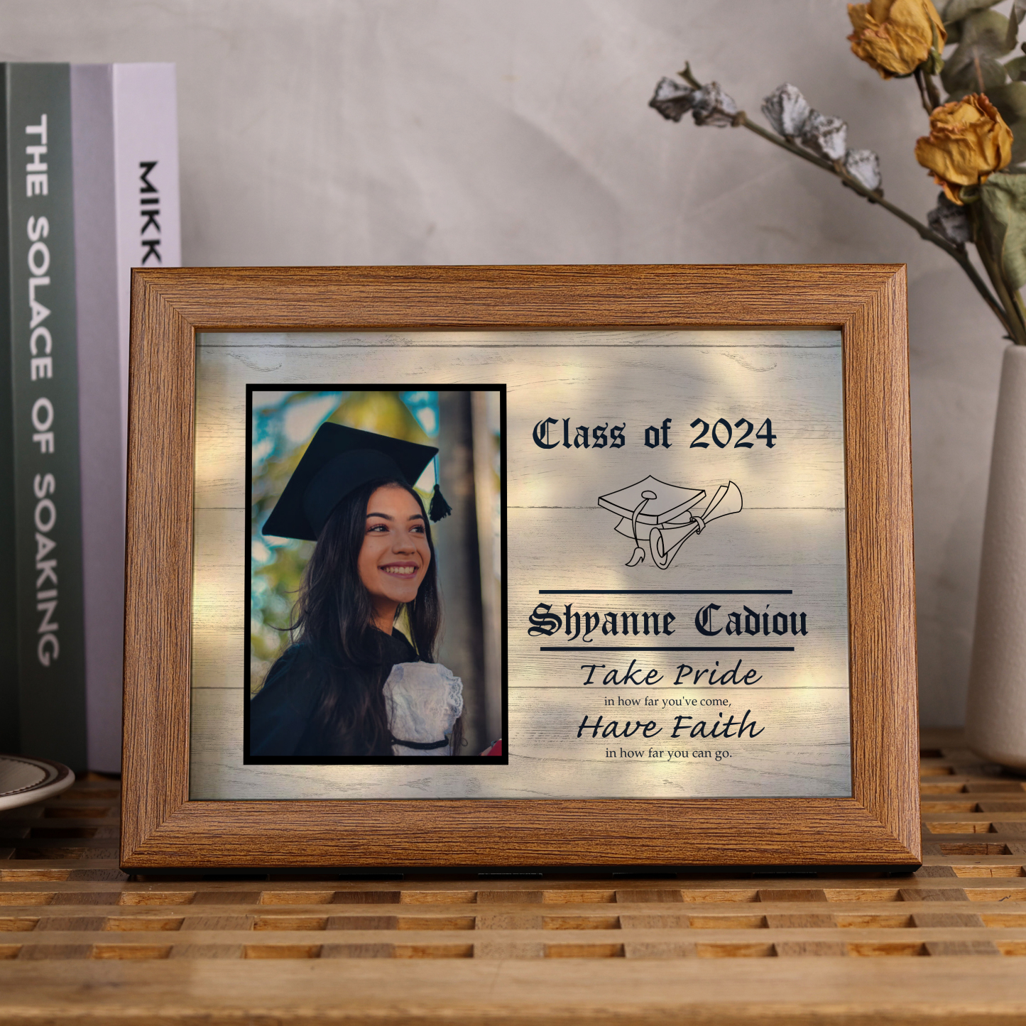 2024 Graduation Gift - Personalized Year & Photo & Name Wood Frame Night Light LED Night Light Gift for Her/Him