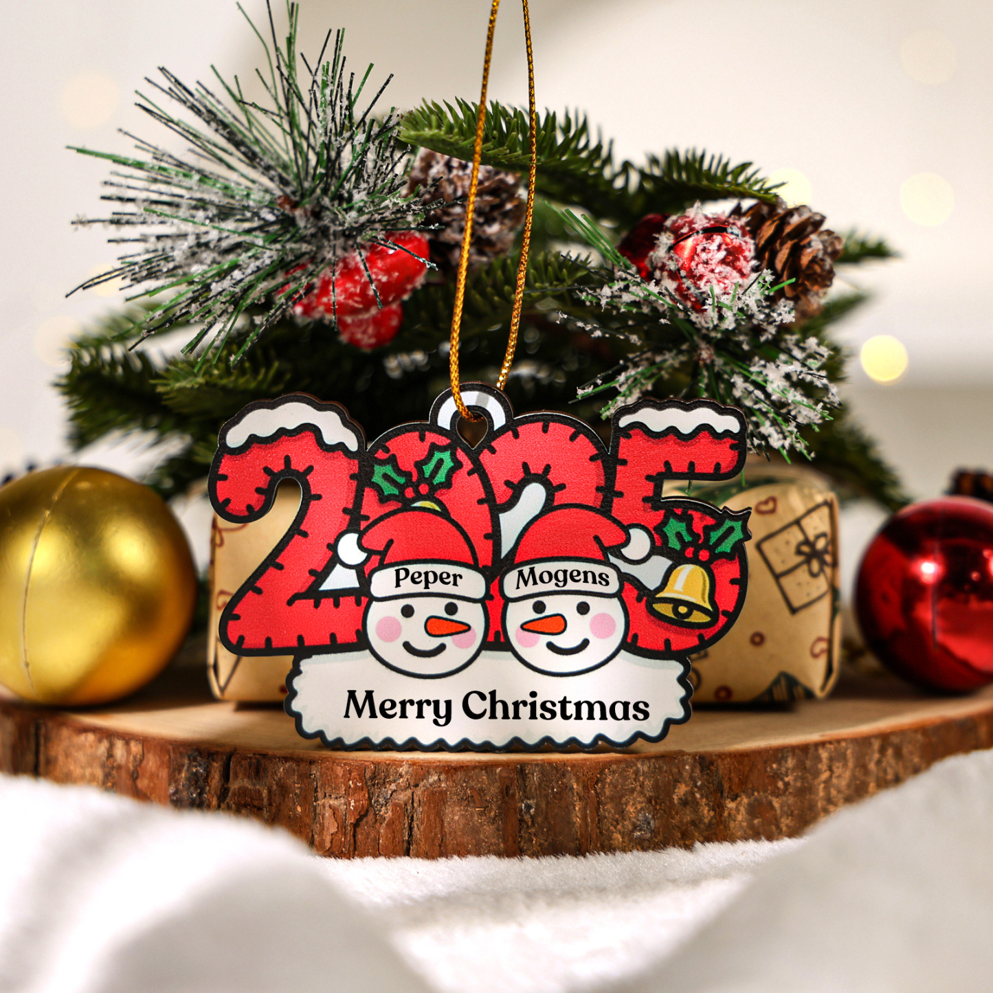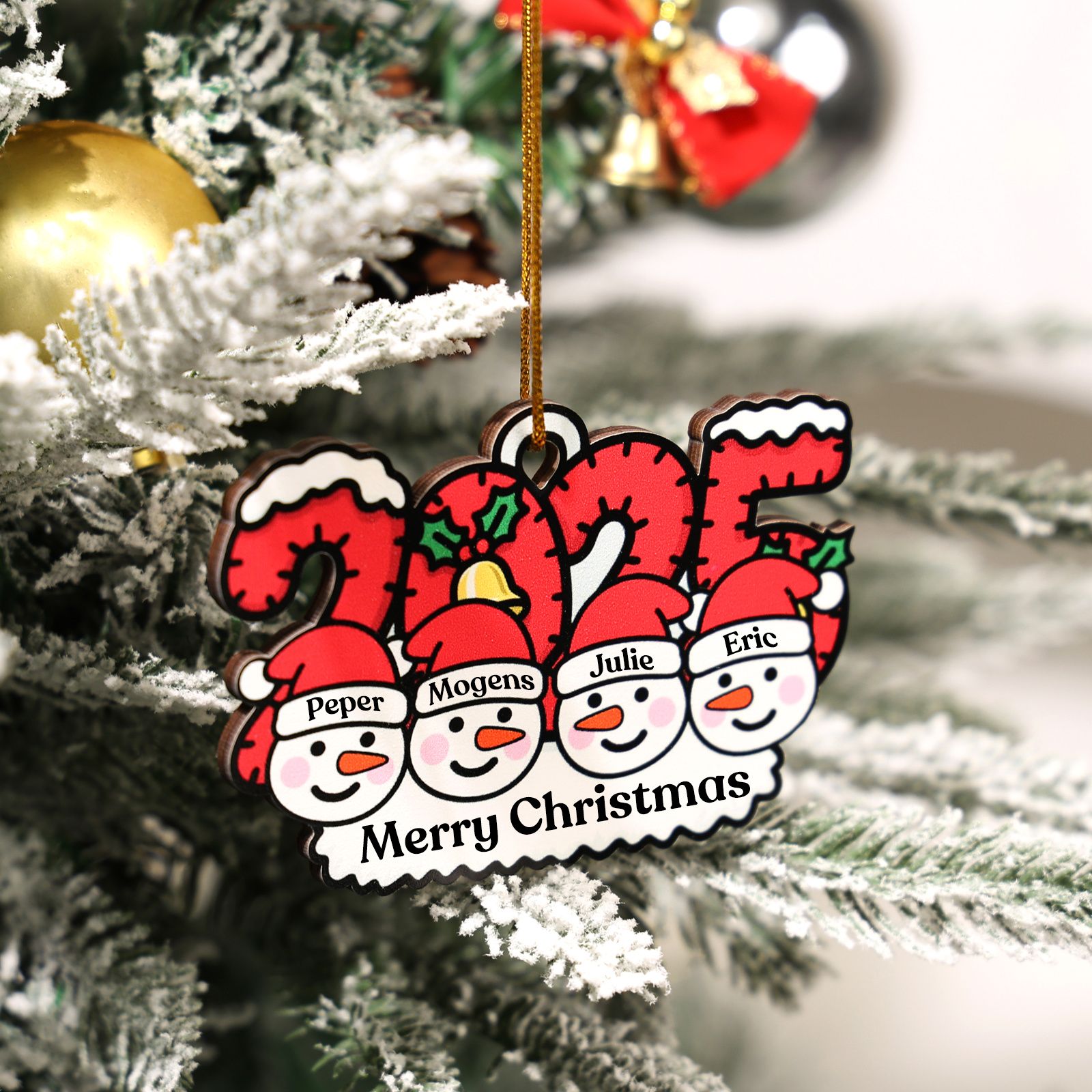 Keywords: personalized Christmas ornament 2025, custom family name ornament, wooden tree decoration, snowman ornament, holiday keepsake, gift for grandparents, gift for couples, Secret Santa gift, stocking tag, first Christmas ornament