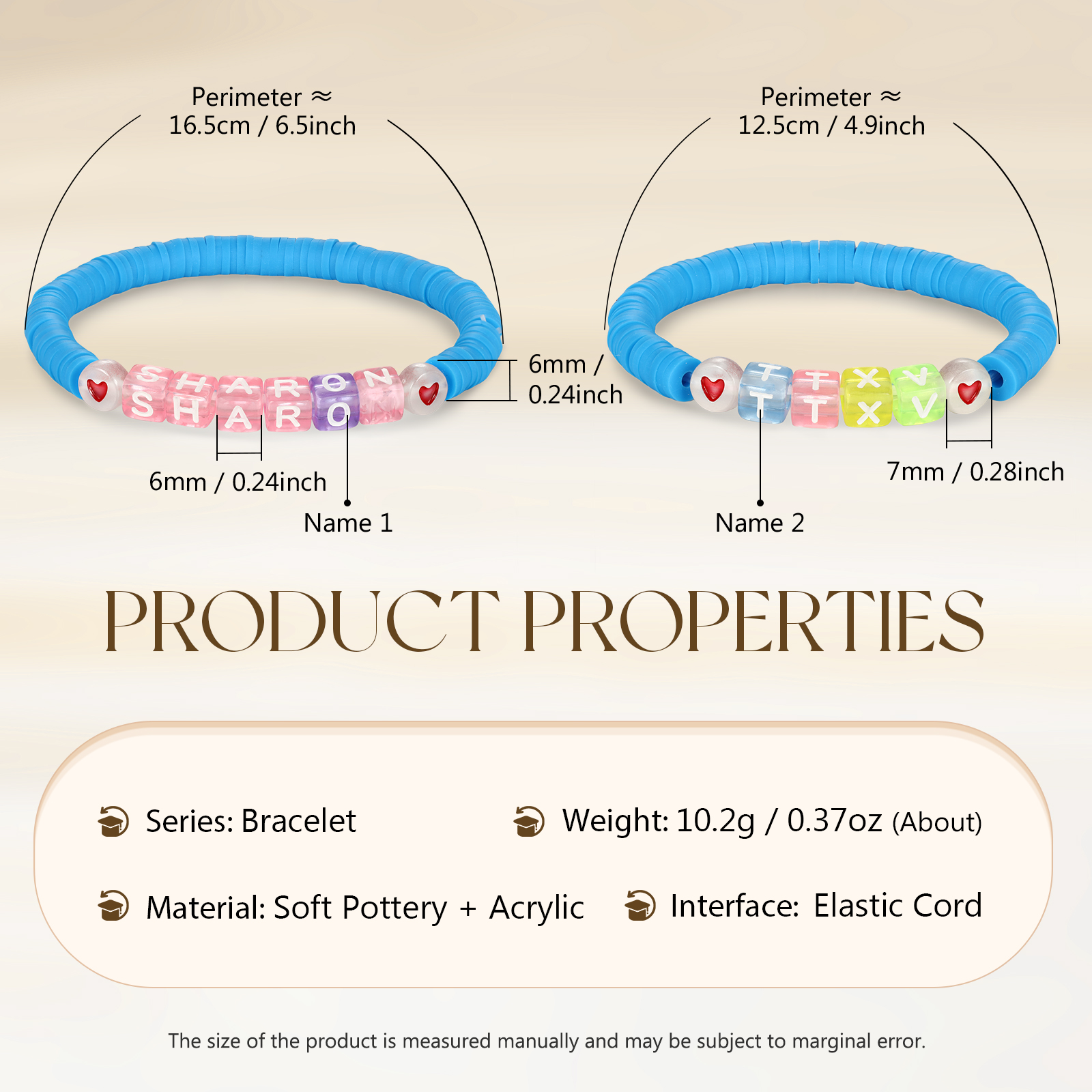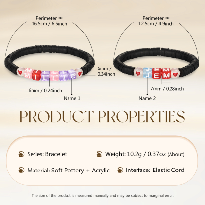 2PCS-Personalized 2 Name Elastic Cord Square Bracelets, Back to School Gift for Daughter