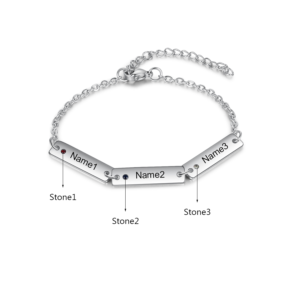 Personalized Bar Bracelet With 3 Birthstones Engraved Names Bracelet Gift For Women